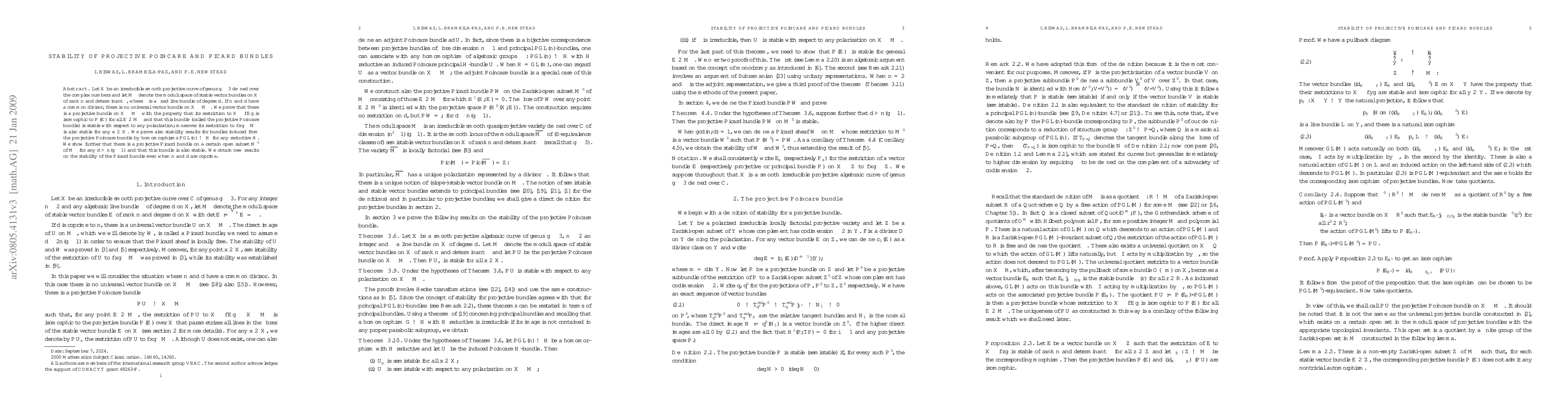 Let $X$ be an irreducible smooth projective curve of genus $g\ge3$ defined over the complex numbers and let ${\mathcal M}_\xi$ denote the moduli space of stable vector bundles on $X$ of rank $n$ and determinant $\xi$, where $\xi$ is a fixed line bundle of degree $d$. If $n$ and $d$ have a common divisor, there is no universal vector bundle on $X\times {\mathcal M}_\xi$. We prove that there is a projective bundle on $X\times {\mathcal M}_\xi$ with the property that its restriction to $X\times\{E\}$ is isomorphic to $P(E)$ for all $E\in\mathcal{M}_\xi$ and that this bundle (called the projective Poincar\'e bundle) is stable with respect to any polarization; moreover its restriction to $\{x\}\times\mathcal{M}_\xi$ is also stable for any $x\in X$. We prove also stability results for bundles induced from the projective Poincar\'e bundle by homomorphisms $\text{PGL}(n)\to H$ for any reductive $H$. We show further that there is a projective Picard bundle on a certain open subset $\mathcal{M}'$ of $\mathcal{M}_\xi$ for any $d>n(g-1)$ and that this bundle is also stable. We obtain new results on the stability of the Picard bundle even when $n$ and $d$ are coprime.
