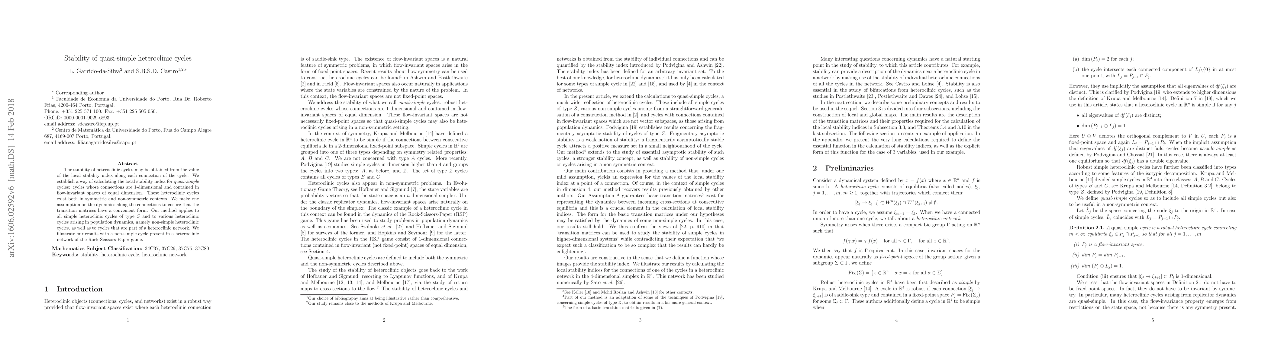 This paper develops a method to calculate the local stability index for quasi-simple heteroclinic cycles, ensuring their stability through connections in flow-invariant spaces. The approach applies to various heteroclinic cycles, including those in population dynamics and heteroclinic networks, as demonstrated by a Rock-Scissors-Paper game example.
