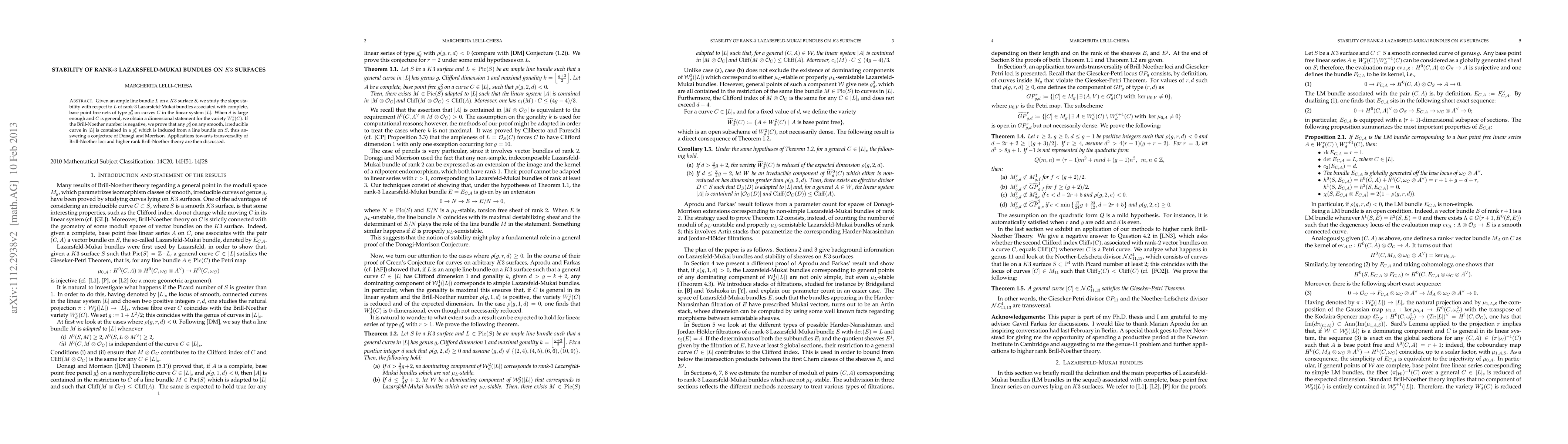 This paper investigates the slope stability of rank-3 Lazarsfeld-Mukai bundles on K3 surfaces with respect to ample line bundles, proving that general curves in large degree base point free nets are contained in higher genus nets induced by line bundles on the surface. The findings also address a conjecture of Donagi and Morrison regarding negative Brill-Noether numbers.