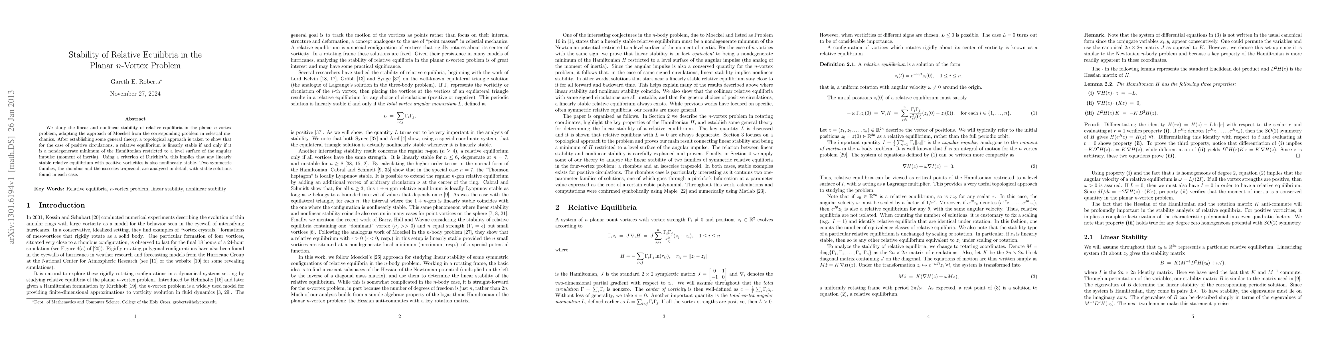 A new analytical framework was developed to determine the stability of relative equilibria in the planar N-body problem, which provides a more accurate and comprehensive understanding of this phenomenon.