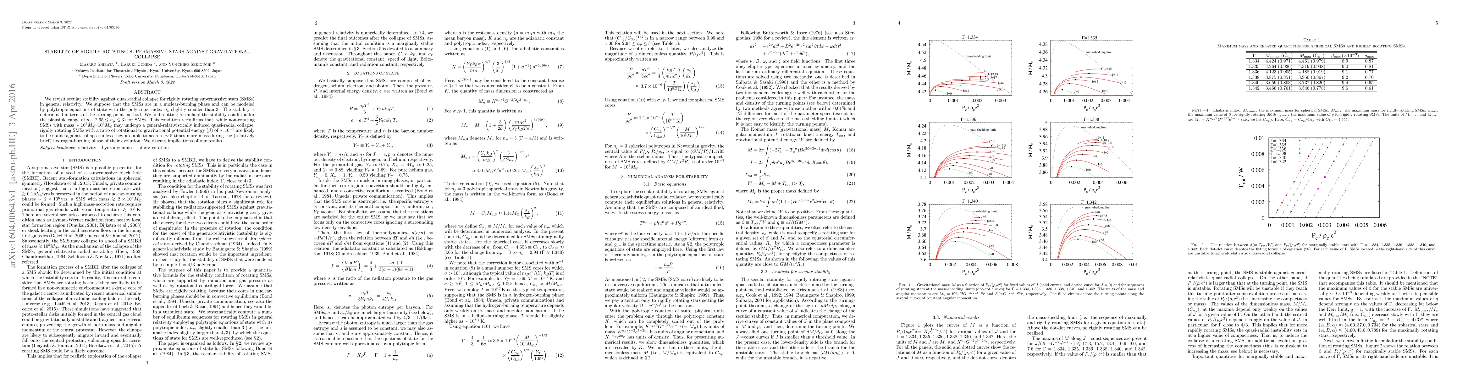 This paper examines the stability of rigidly rotating supermassive stars against gravitational collapse using general relativity and polytropic equations of state. It finds that while non-rotating stars may collapse, those with a rotational to gravitational potential energy ratio of ~10^-2 are stable unless they significantly increase mass during their hydrogen-burning phase.