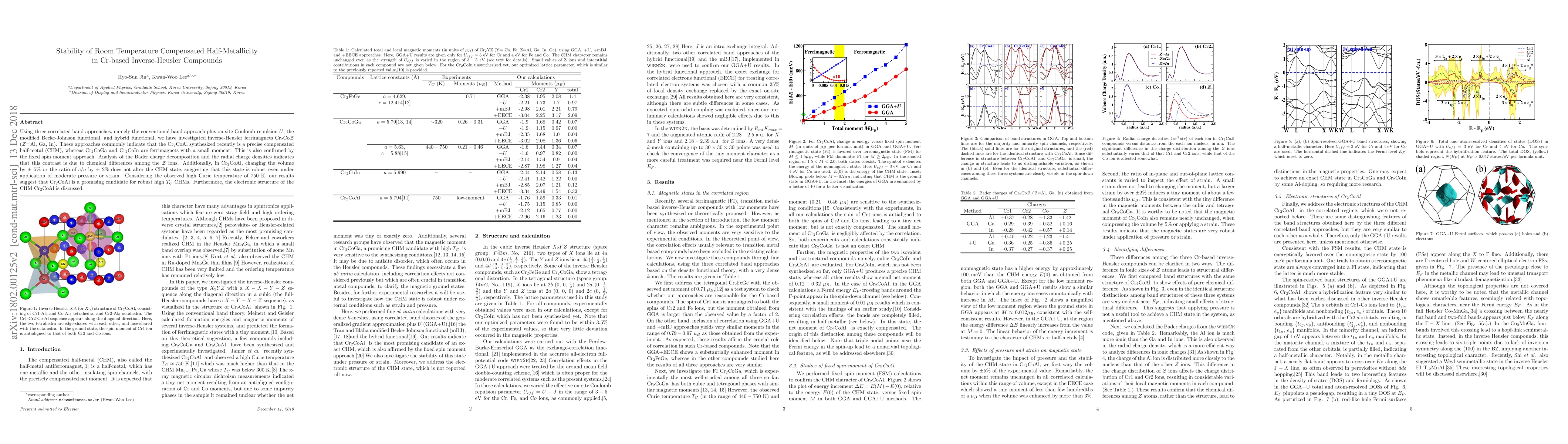 This study investigates the stability of half-metallicity in Cr$_2$CoAl, Cr$_2$CoGa, and Cr$_2$CoIn using various band approaches, finding that Cr$_2$CoAl maintains its compensated half-metallic state under moderate pressure and strain, making it a promising candidate for high temperature applications. The robustness of Cr$_2$CoAl's half-metallicity is attributed to chemical differences among the Z ions and its high Curie temperature of 750 K.