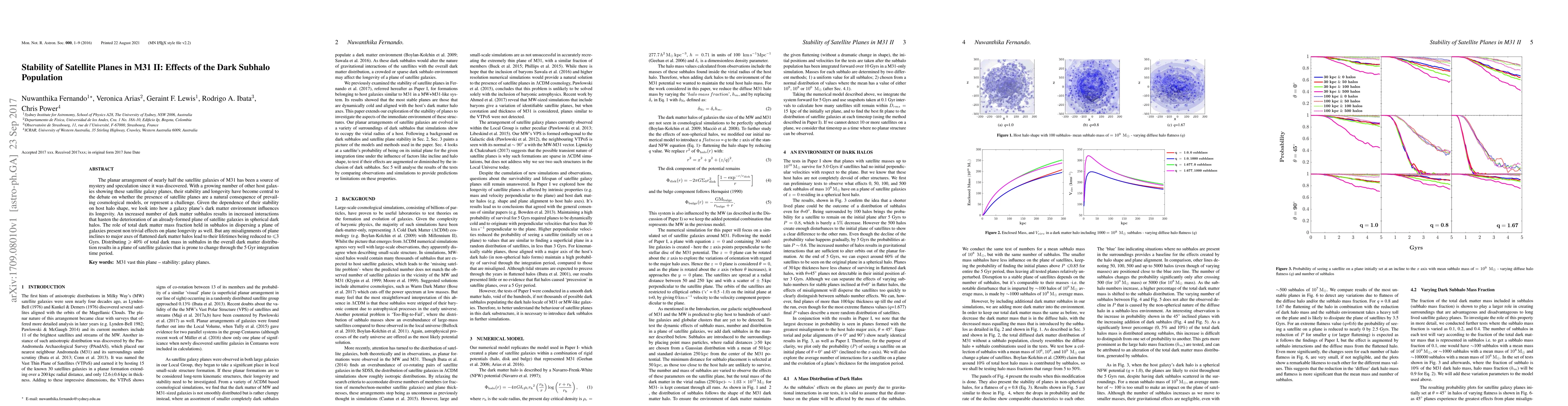 The planar arrangement of nearly half the satellite galaxies of M31 has been a source of mystery and speculation since it was discovered. With a growing number of other host galaxies showing these satellite galaxy planes, their stability and longevity have become central to the debate on whether the presence of satellite planes are a natural consequence of prevailing cosmological models, or represent a challenge. Given the dependence of their stability on host halo shape, we look into how a galaxy plane's dark matter environment influences its longevity. An increased number of dark matter subhalos results in increased interactions that hasten the deterioration of an already-formed plane of satellite galaxies in spherical dark halos. The role of total dark matter mass fraction held in subhalos in dispersing a plane of galaxies present non trivial effects on plane longevity as well. But any misalignments of plane inclines to major axes of flattened dark matter halos lead to their lifetimes being reduced to < 3 Gyrs. Distributing > 40% of total dark mass in subhalos in the overall dark matter distribution results in a plane of satellite galaxies that is prone to change through the 5 Gyr integration time period.