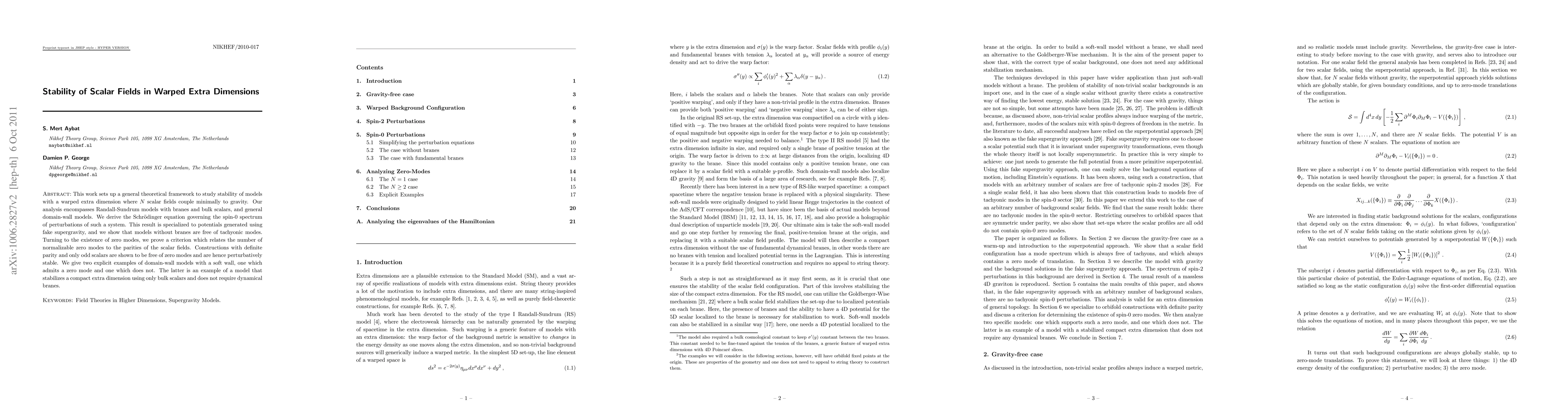 This work sets up a general theoretical framework to study stability of models with a warped extra dimension where N scalar fields couple minimally to gravity. Our analysis encompasses Randall-Sundrum models with branes and bulk scalars, and general domain-wall models. We derive the Schrodinger equation governing the spin-0 spectrum of perturbations of such a system. This result is specialized to potentials generated using fake supergravity, and we show that models without branes are free of tachyonic modes. Turning to the existence of zero modes, we prove a criterion which relates the number of normalizable zero modes to the parities of the scalar fields. Constructions with definite parity and only odd scalars are shown to be free of zero modes and are hence perturbatively stable. We give two explicit examples of domain-wall models with a soft wall, one which admits a zero mode and one which does not. The latter is an example of a model that stabilizes a compact extra dimension using only bulk scalars and does not require dynamical branes.