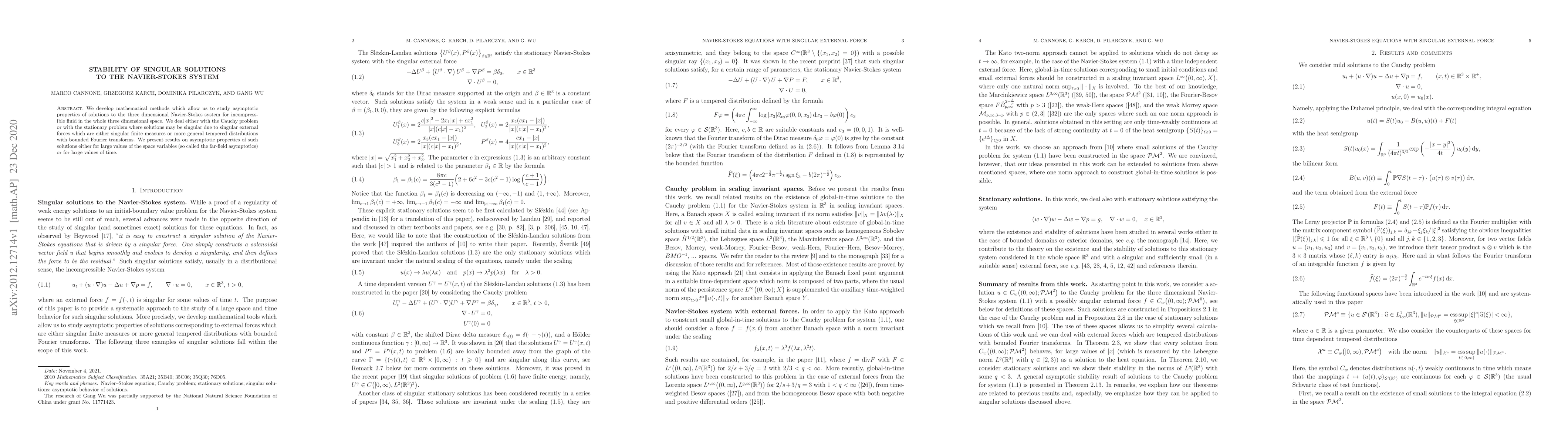 This paper studies the stability of singular solutions to the Navier-Stokes system for incompressible fluids, focusing on asymptotic properties and their implications.