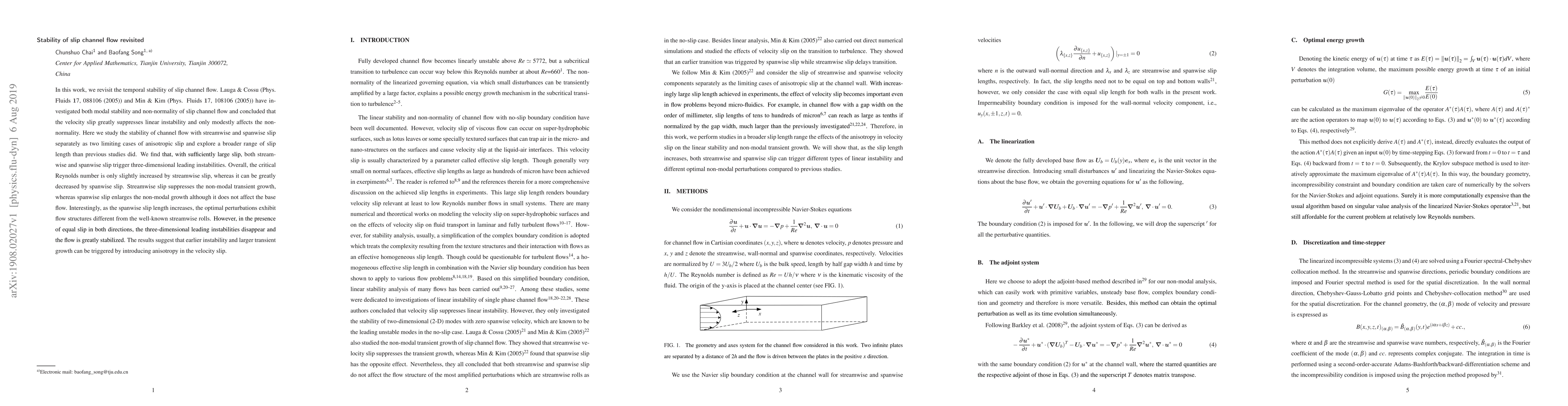 Research on slip channel flow reveals that introducing anisotropy in velocity slip can trigger three-dimensional leading instabilities, reducing critical Reynolds numbers, while also affecting transient growth.