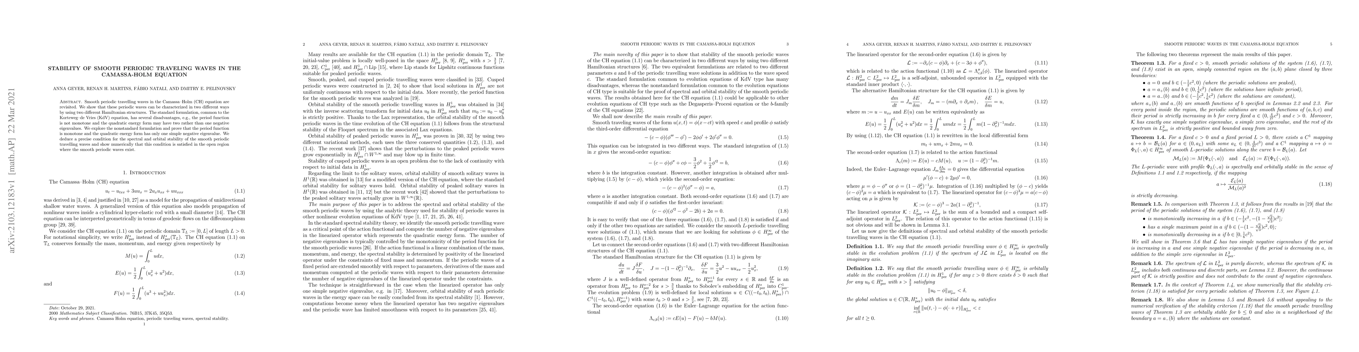 This paper investigates the stability of smooth periodic traveling waves in the Camassa-Holm equation, demonstrating that a nonstandard Hamiltonian formulation offers advantages over the standard one, including a monotone period function and a more favorable energy structure. The study concludes with a precise stability condition and numerical evidence supporting its validity.