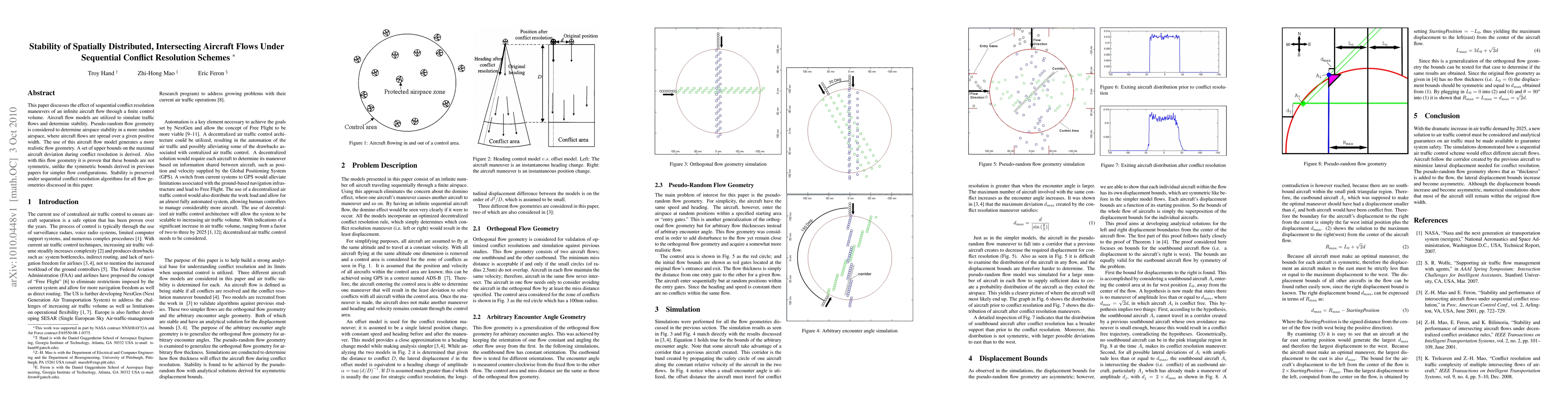 This paper discusses the effect of sequential conflict resolution maneuvers of an infinite aircraft flow through a finite control volume. Aircraft flow models are utilized to simulate traffic flows and determine stability. Pseudo-random flow geometry is considered to determine airspace stability in a more random airspace, where aircraft flows are spread over a given positive width. The use of this aircraft flow model generates a more realistic flow geometry. A set of upper bounds on the maximal aircraft deviation during conflict resolution is derived. Also with this flow geometry it is proven that these bounds are not symmetric, unlike the symmetric bounds derived in previous papers for simpler flow configurations. Stability is preserved under sequential conflict resolution algorithms for all flow geometries discussed in this paper.