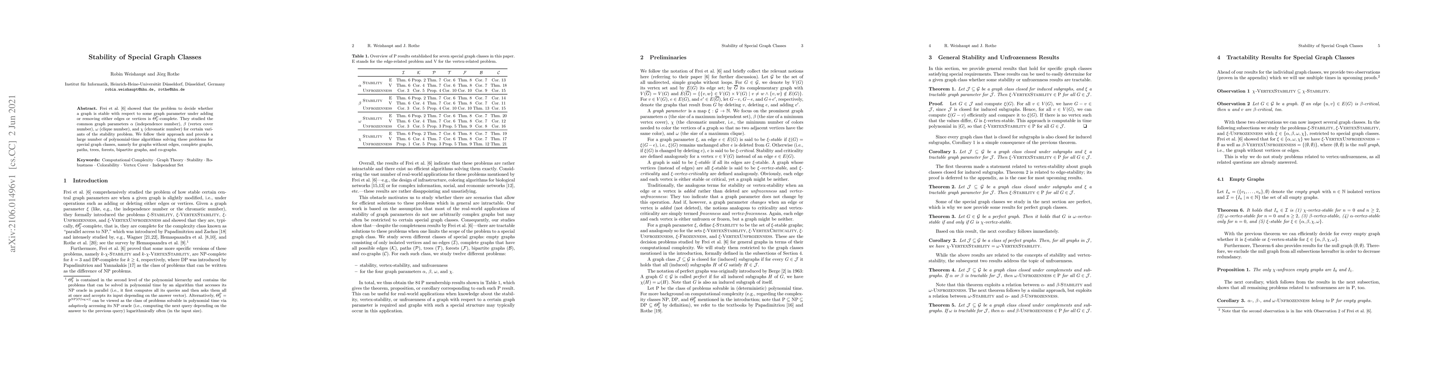 Researchers have developed polynomial-time algorithms to determine stability for various special graph classes, including edge-less graphs, complete graphs, paths, trees, forests, bipartite graphs, and co-graphs.