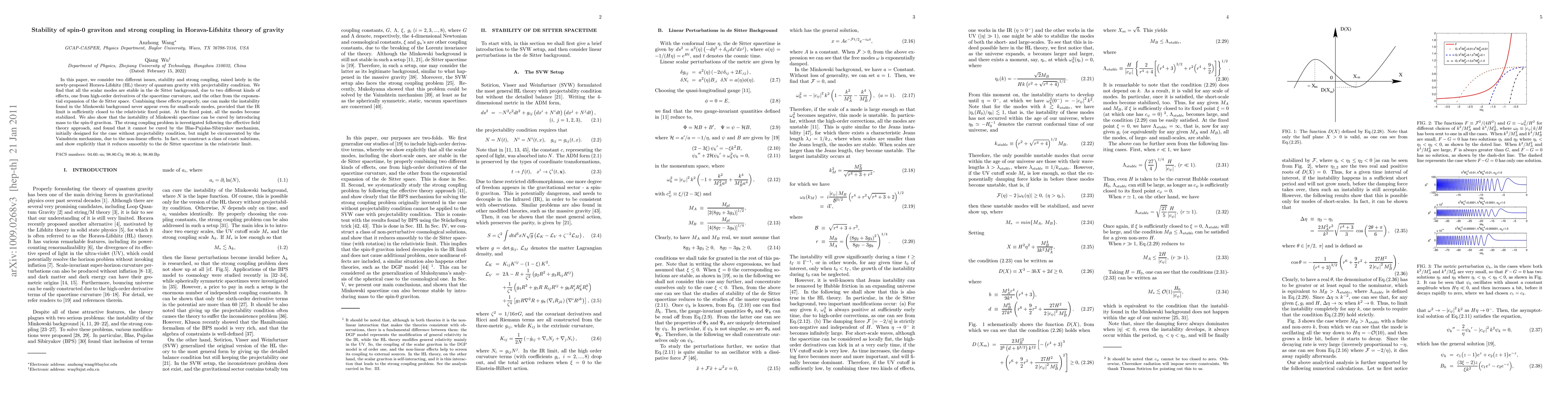 This paper investigates the stability and strong coupling issues in Horava-Lifshitz theory of quantum gravity, finding that scalar modes remain stable in de Sitter space due to high-order derivatives and exponential expansion. The strong coupling problem is not resolved by the Blas-Pujolas-Sibiryakov mechanism but may be mitigated by the Vainshtein mechanism.