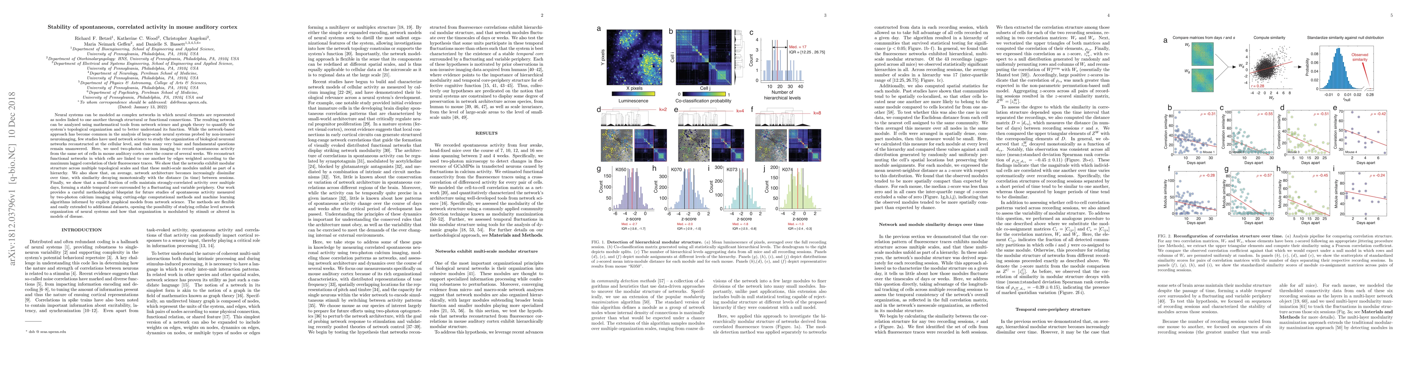 This study uses two-photon calcium imaging to track spontaneous activity in mouse auditory cortex over weeks, revealing modular network structures and a stable temporal core of cells amidst overall decreasing network similarity over time. The findings offer a methodological framework for future studies on cellular-level network organization.