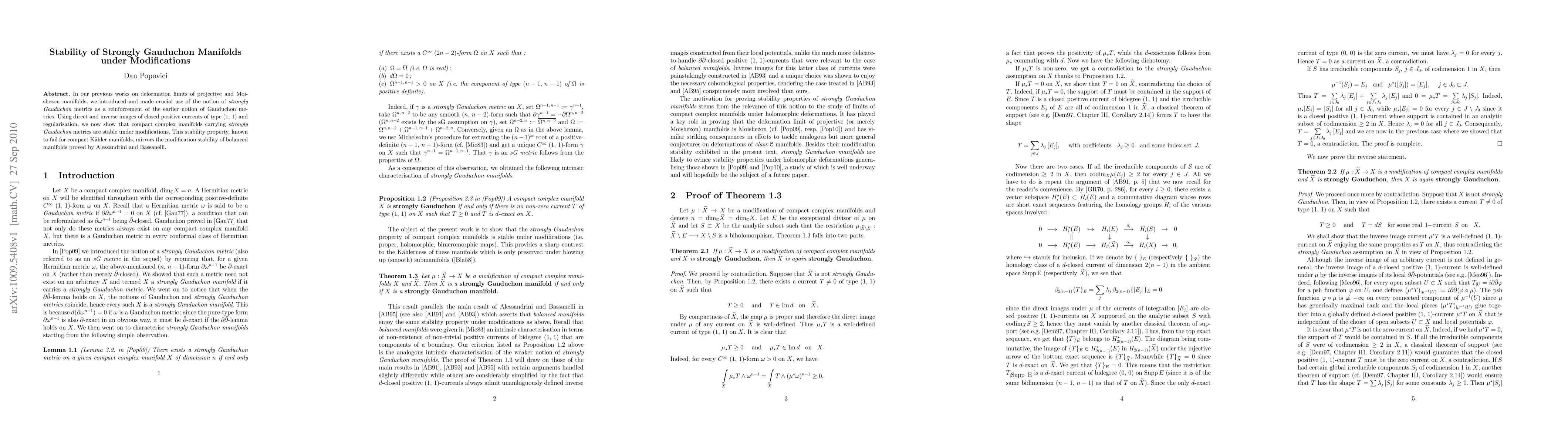 This paper demonstrates that compact complex manifolds with strongly Gauduchon metrics remain stable under modifications, contrasting with the instability of compact Kähler manifolds. This stability mirrors the results for balanced manifolds, reinforcing the robustness of strongly Gauduchon metrics.