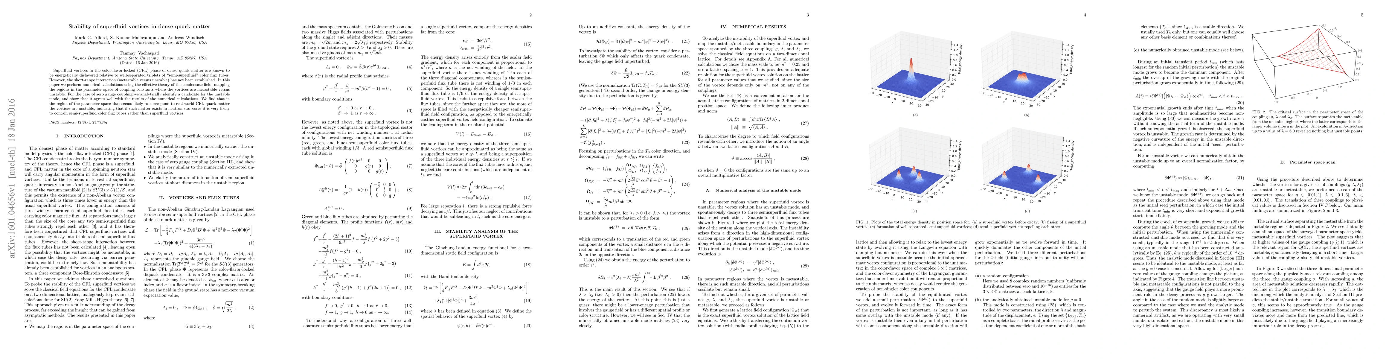 This paper investigates the stability of superfluid vortices in dense quark matter within the CFL phase, finding that vortices are unstable in likely real-world conditions. Numerical and analytical calculations reveal that semi-superfluid color flux tubes are more stable, suggesting neutron star cores may contain these instead of vortices.