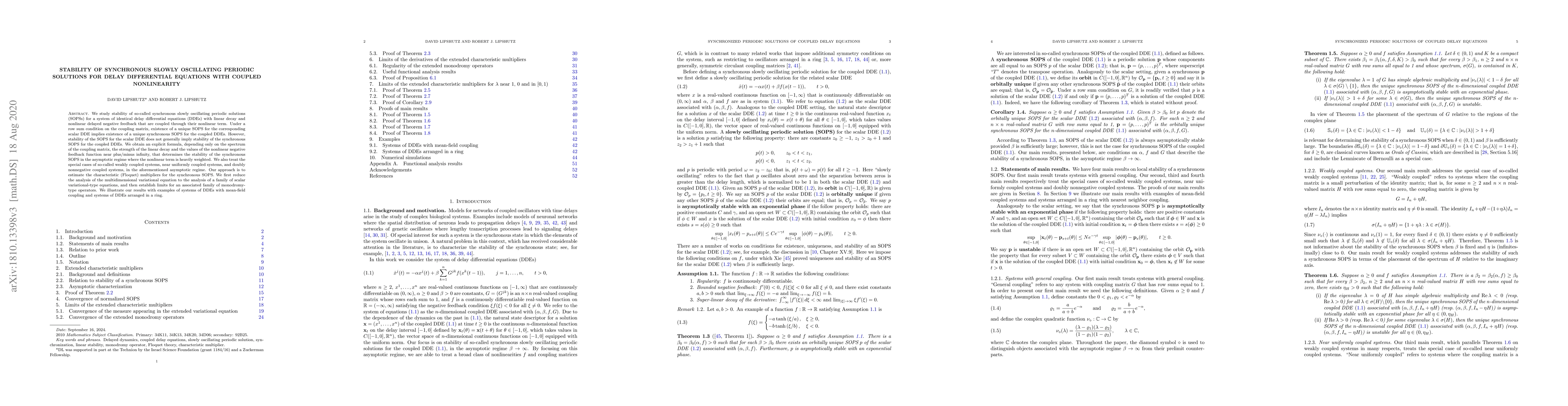 The paper investigates the stability of synchronous slowly oscillating periodic solutions in systems of delay differential equations with coupled nonlinearity, finding that stability depends on the coupling matrix spectrum and nonlinear feedback function.