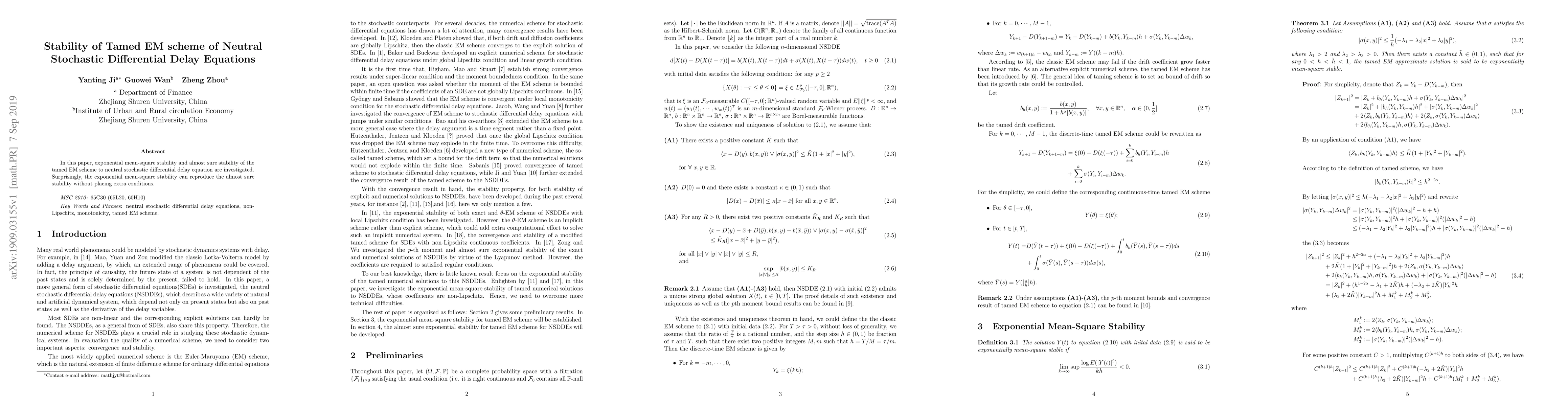In this paper, exponential mean-square stability and almost sure stability of the tamed EM scheme to neutral stochastic differential delay equation are investigated. Surprisingly, the exponential mean-square stability can reproduce the almost sure stability without placing extra conditions.