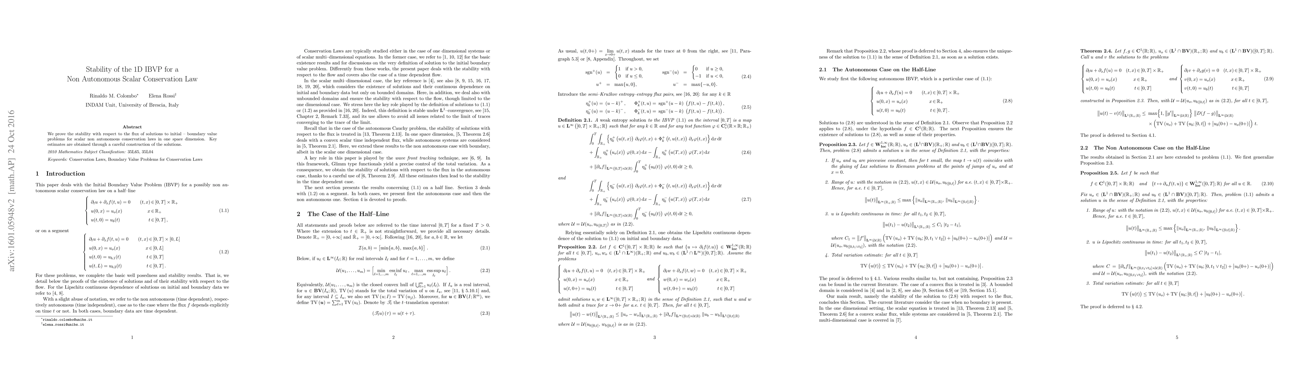 This paper proves the stability of solutions to initial-boundary value problems for non-autonomous scalar conservation laws in one dimension, utilizing key estimates derived from the meticulous construction of these solutions.