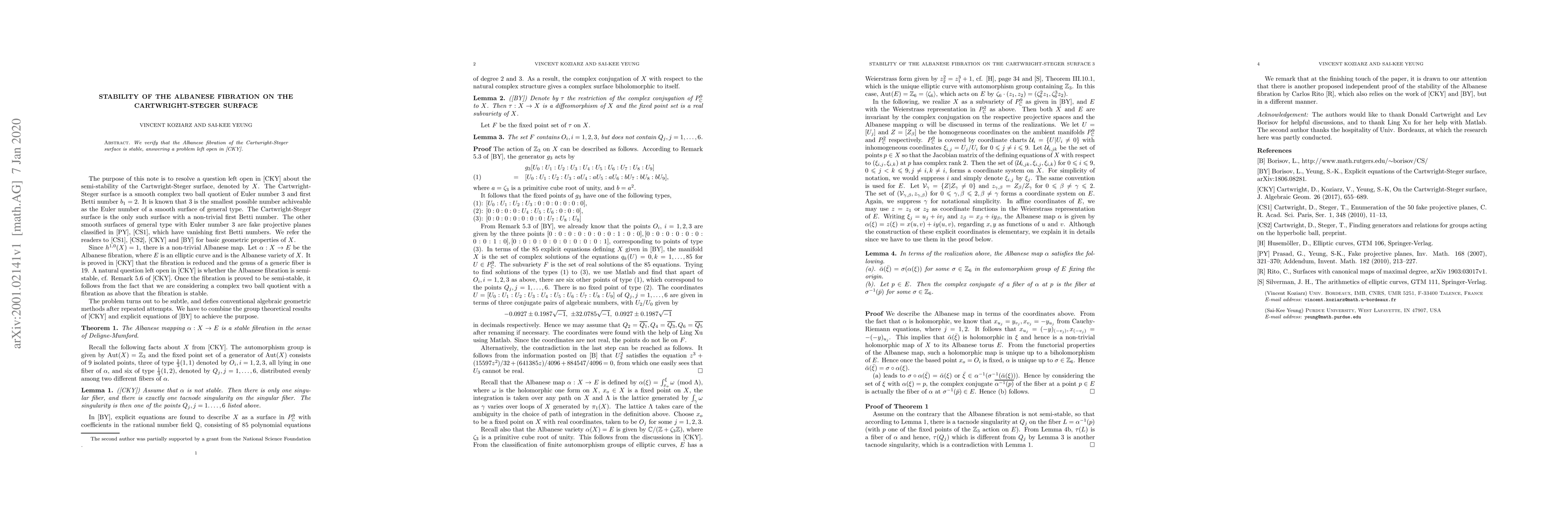 We verify that the Albanese fibration of the Cartwright-Steger surface is stable, answering a problem left open in [CKY].