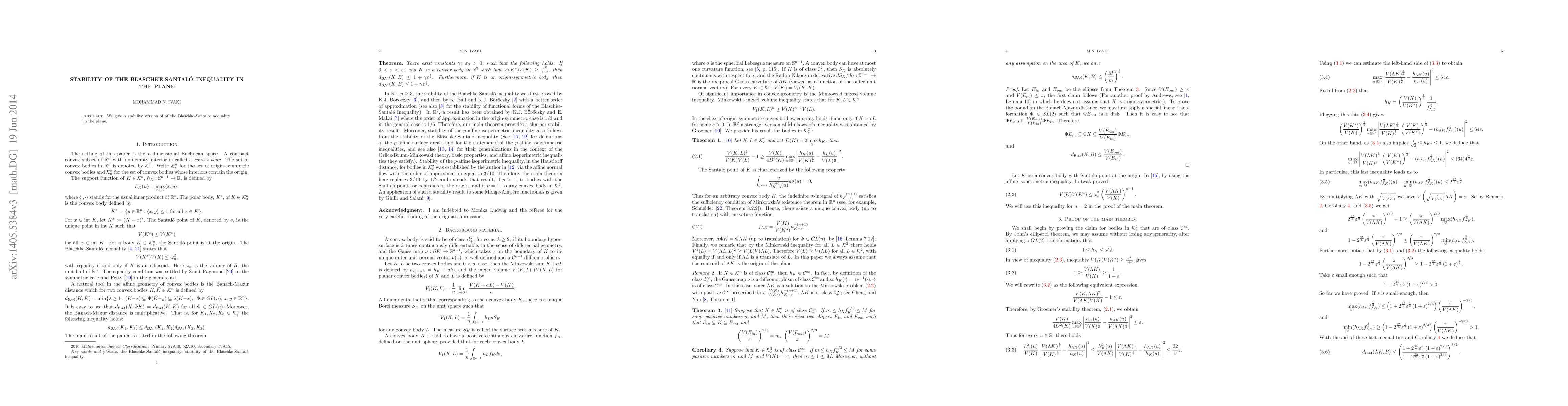 Two-line summary: This paper presents a stability version of the Blaschke-Santaló inequality in the plane, enhancing our understanding of the geometric properties and providing a measure of how closely configurations adhere to the inequality. The results extend the traditional inequality with a quantitative notion of stability.