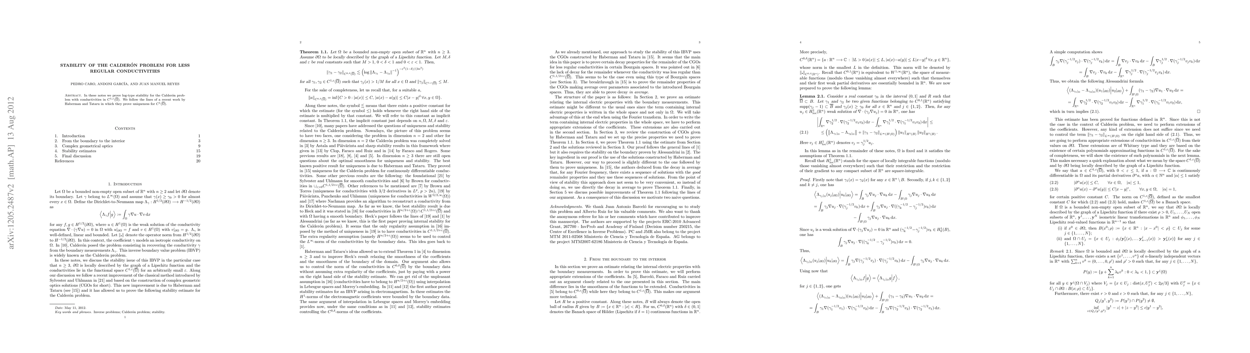In these notes we prove log-type stability for the Calder\'on problem with conductivities in $ C^{1,\varepsilon}(\bar{\Omega}) $. We follow the lines of a recent work by Haberman and Tataru in which they prove uniqueness for $ C^1(\bar{\Omega}) $.