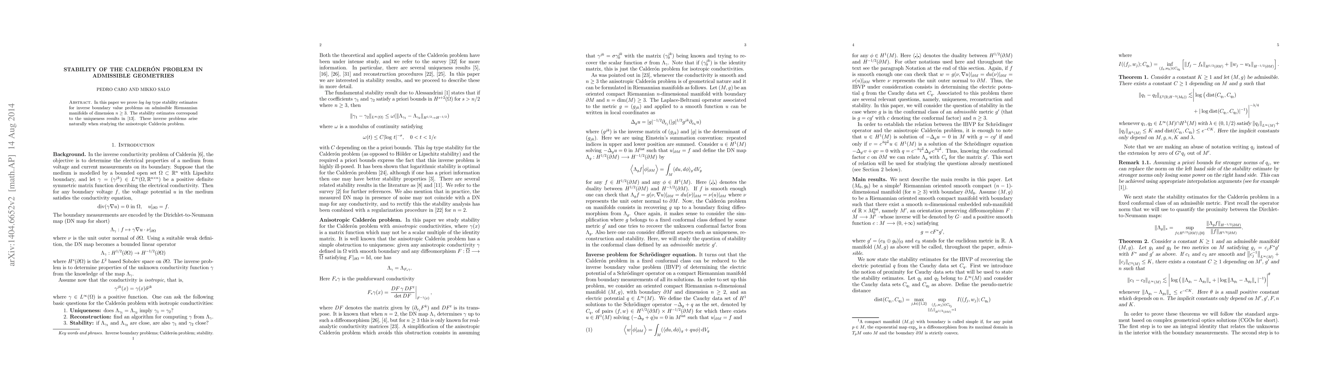 This paper establishes log log stability estimates for inverse boundary value problems on admissible Riemannian manifolds, providing support for uniqueness results in the anisotropic Calder\'on problem. These findings enhance our understanding of the stability in admissible geometries.