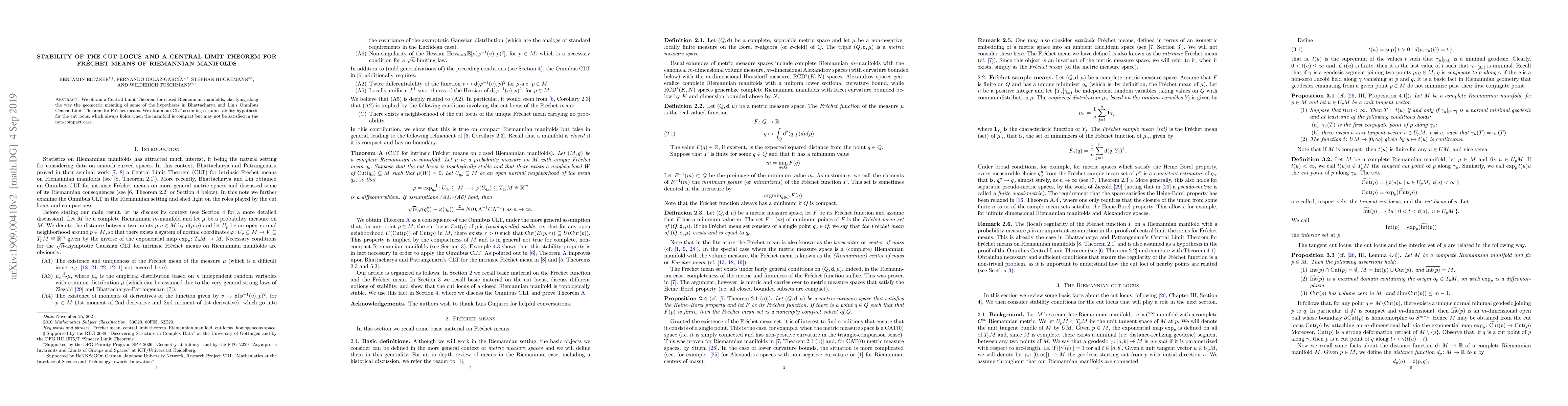 This paper establishes a Central Limit Theorem for Fr\'echet means on closed Riemannian manifolds, relying on the stability of the cut locus. The authors clarify the geometric implications of the hypotheses in Bhattacharya and Lin's theorem, noting that the stability condition holds for compact manifolds but may fail in non-compact cases.