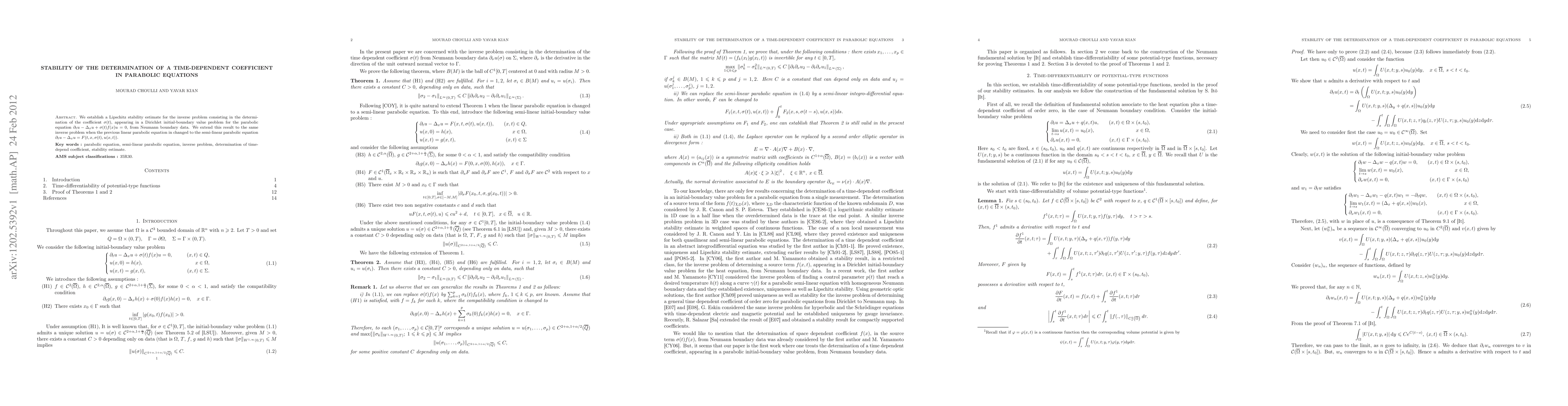 We establish a Lipschitz stability estimate for the inverse problem consisting in the determination of the coefficient $\sigma(t)$, appearing in a Dirichlet initial-boundary value problem for the parabolic equation $\partial_tu-\Delta_x u+\sigma(t)f(x)u=0$, from Neumann boundary data. We extend this result to the same inverse problem when the previous linear parabolic equation in changed to the semi-linear parabolic equation $\partial_tu-\Delta_x u=F(t,x,\sigma(t),u(x,t))$.