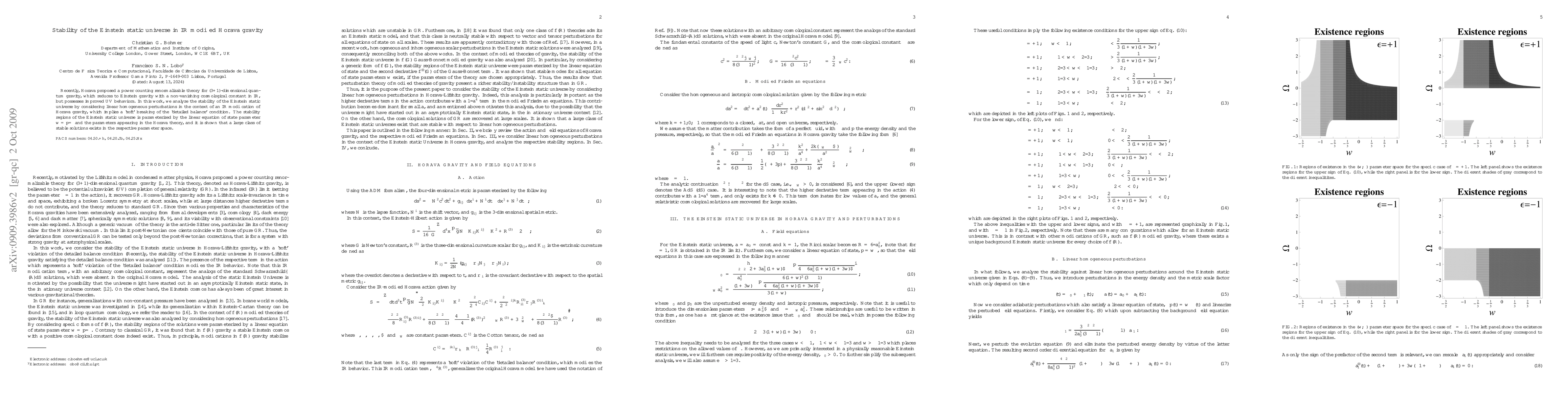 This paper investigates the stability of the Einstein static universe in the context of IR modified Horava gravity, revealing that a broad range of stable solutions exists within the parameter space defined by the equation of state parameter and Horava theory parameters. The analysis considers linear perturbations, highlighting a "soft" breaking of the detailed balance condition.