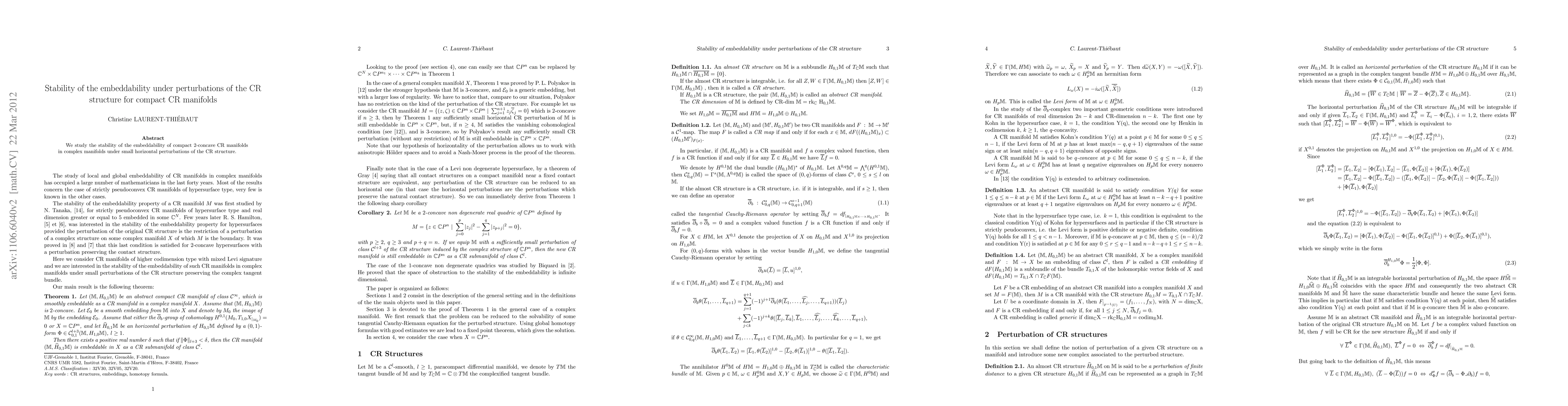 We study the stability of the embeddability of compact 2-concave CR manifolds in complex manifolds under small horizontal perturbations of the CR structure.