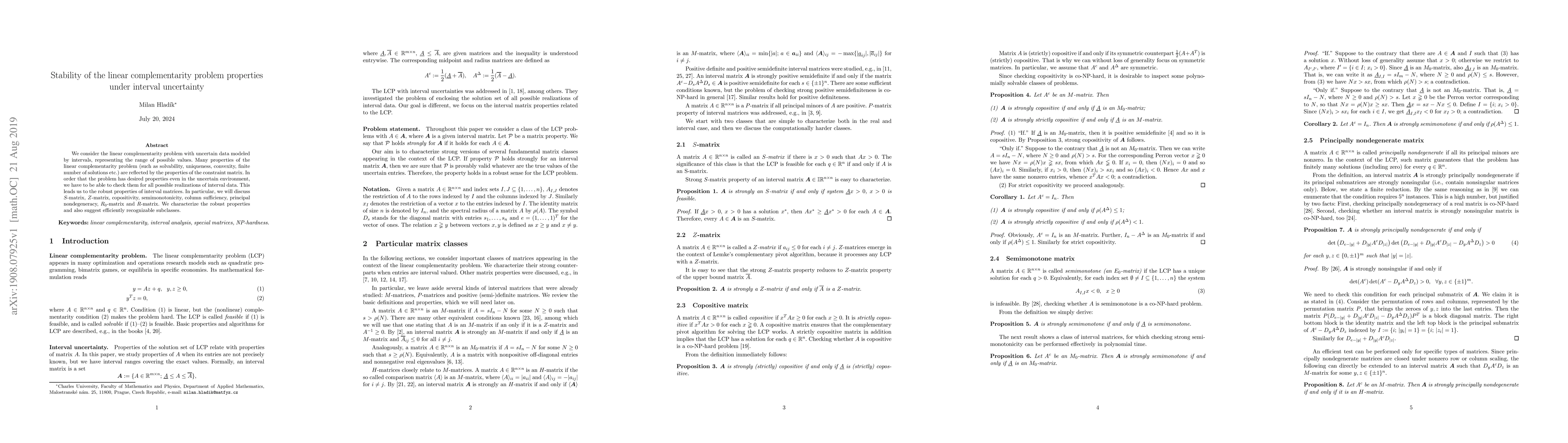 This paper investigates the stability of linear complementarity problem properties under interval uncertainty, focusing on robust properties of interval matrices such as $S$-matrix, $Z$-matrix, and others. It characterizes these robust properties and proposes efficient subclasses for recognizing them.