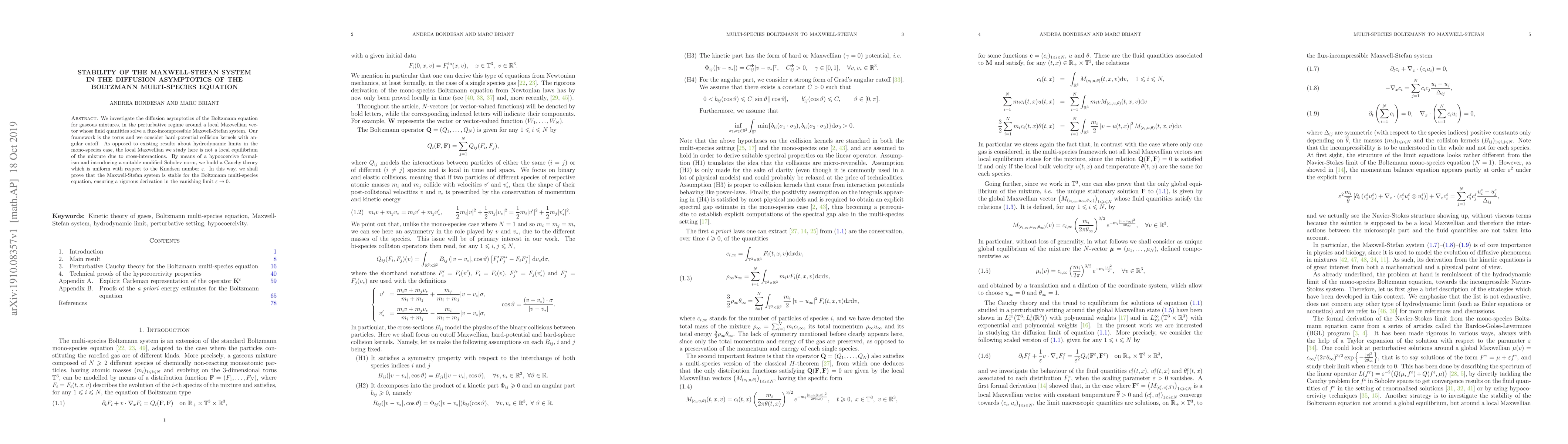 This paper investigates the diffusion asymptotics of the Boltzmann equation for gaseous mixtures, proving stability of the Maxwell-Stefan system in the perturbative regime around a local Maxwellian. It employs a hypocoercive formalism and a modified Sobolev norm to establish a uniform Cauchy theory, ensuring stability as the Knudsen number approaches zero.