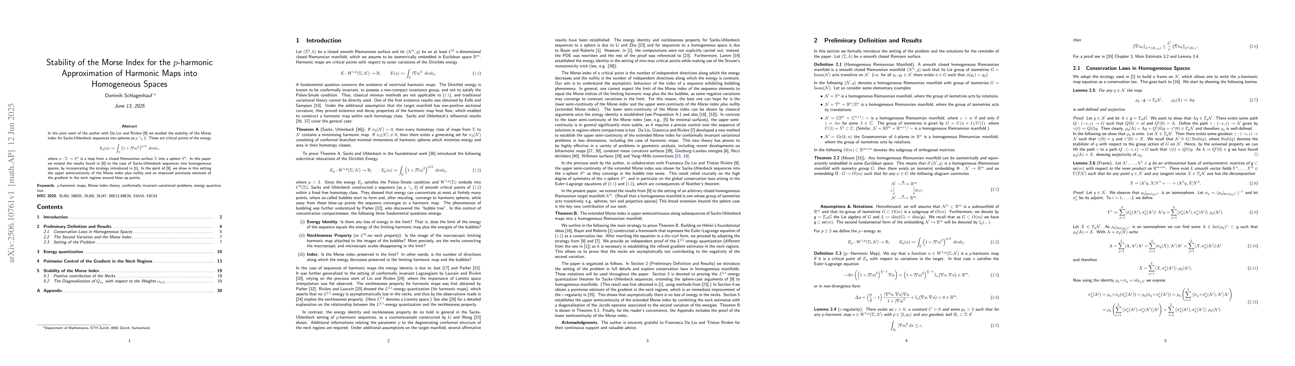 In the joint work of the author with Da Lio and Rivi\`ere (Morse Index Stability for Sequences of Sacks-Uhlenbeck Maps into a Sphere) we studied the stability of the Morse index for Sacks-Uhlenbeck sequences into spheres as $p\searrow2$. These are critical points of the energy $E_p(u) := \int_\Sigma \left( 1+|\nabla u|^2\right)^{p/2} \ dvol_\Sigma,$ where $u:\Sigma \rightarrow S^n$ is a map from a closed Riemannian surface $\Sigma$ into a sphere $ S^n$. In this paper we extend the results found in our previous work to the case of Sacks-Uhlenbeck sequences into homogeneous spaces, by incorporating the strategy introduced by Bayer and Roberts (Energy identity and no neck property for $\epsilon$-harmonic and $\alpha$-harmonic maps into homogeneous target manifolds). In the spirit of the work of Da Lio, Gianocca and Rivi\`ere (Morse Index Stability for Critical Points to Conformally invariant Lagrangians), we show in this setting the upper semicontinuity of the Morse index plus nullity and an improved pointwise estimate of the gradient in the neck regions around blow up points.