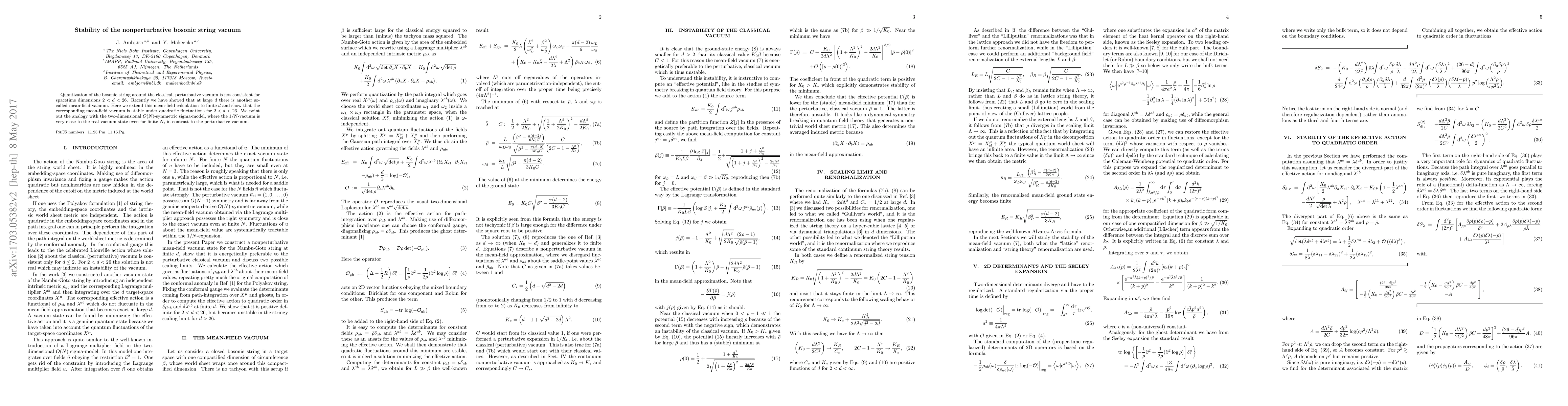 This paper demonstrates that the mean field vacuum, identified at large dimensions, remains stable under quadratic fluctuations for dimensions 2<d<26, contrasting with the inconsistent perturbative vacuum. The stability is analogous to the behavior of the 1/N-vacuum in the two-dimensional O(N)-symmetric sigma-model.