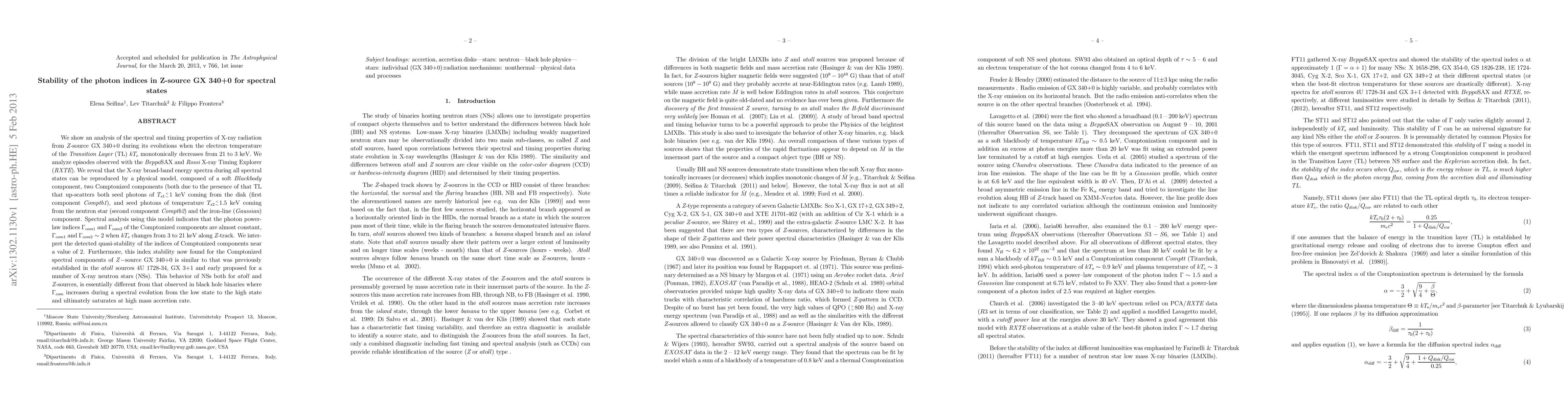 We show an analysis of the spectral and timing properties of X-ray radiation from Z-source during its evolutions when the electron temperature of the Transition Layer (TL) kT_e monotonically decreases from 21 to 3 keV. We analyze episodes observed with the BeppoSAX and Rossi X-ray Timing Explorer (RXTE). We reveal that the X-ray broad-band energy spectra during all spectral states can be reproduced by a {physical} model, composed of a soft blackbody component, {two Comptonized components (both due to the presence of that TL that up-scatters both seed photons of T_{s1}<1 keV coming from the disk (first component, Comptb1), and seed photons of temperature T_{s2}<1.5 keV coming from the neutron star (second component, Comptb2) and the iron-line (Gaussian) component. Spectral analysis using this model indicates that the photon power-law indices Gamma_{com1} and Gamma_{com2} of the Comptonized components are almost constant, Gamma_{com1} and Gamma_{com2} ~ 2 when kT_e changes from 3 to 21 keV along Z-track. We interpret the detected quasi-stability of the indices of Comptonized components near a value of 2. Furthermore, this index stability now found for the Comptonized spectral components of Z-source GX 340+0 is similar to that was previously established in the atoll sources 4U~1728-34, GX 3+1 and early proposed for a number of X-ray neutron stars (NSs). This behavior of NSs both for atoll and Z-sources, is essentially different from that observed in black hole binaries where Gamma_{com} increases during a spectral evolution from the low state to the high state and ultimately saturates at high mass accretion rate.