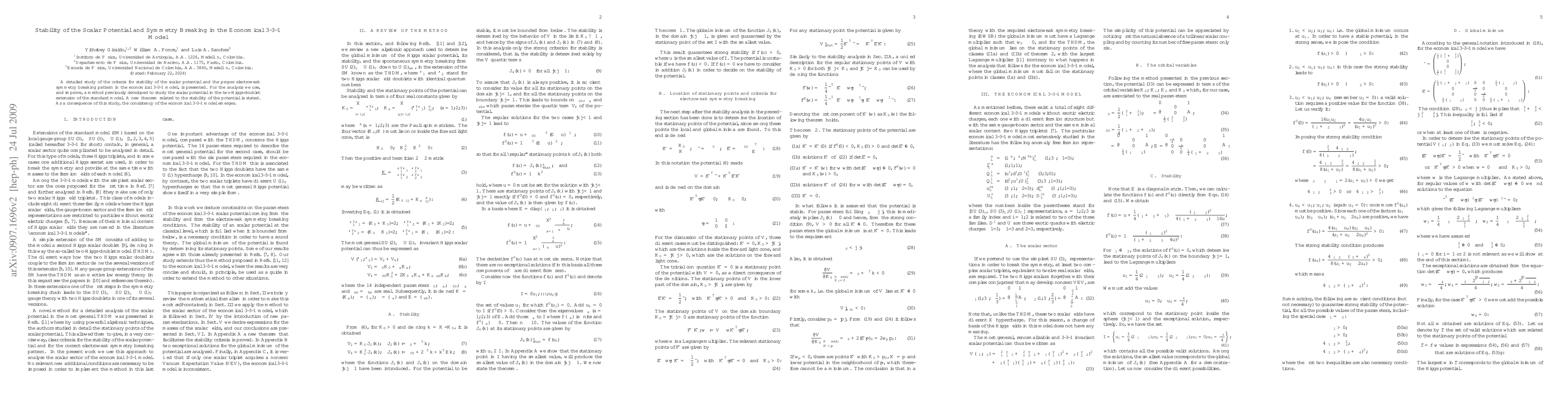 This paper investigates the stability criteria of the scalar potential and the electroweak symmetry breaking in the economical 3-3-1 model, employing and enhancing a previously developed method. A new theorem on potential stability is introduced, confirming the consistency of the 3-3-1 model.