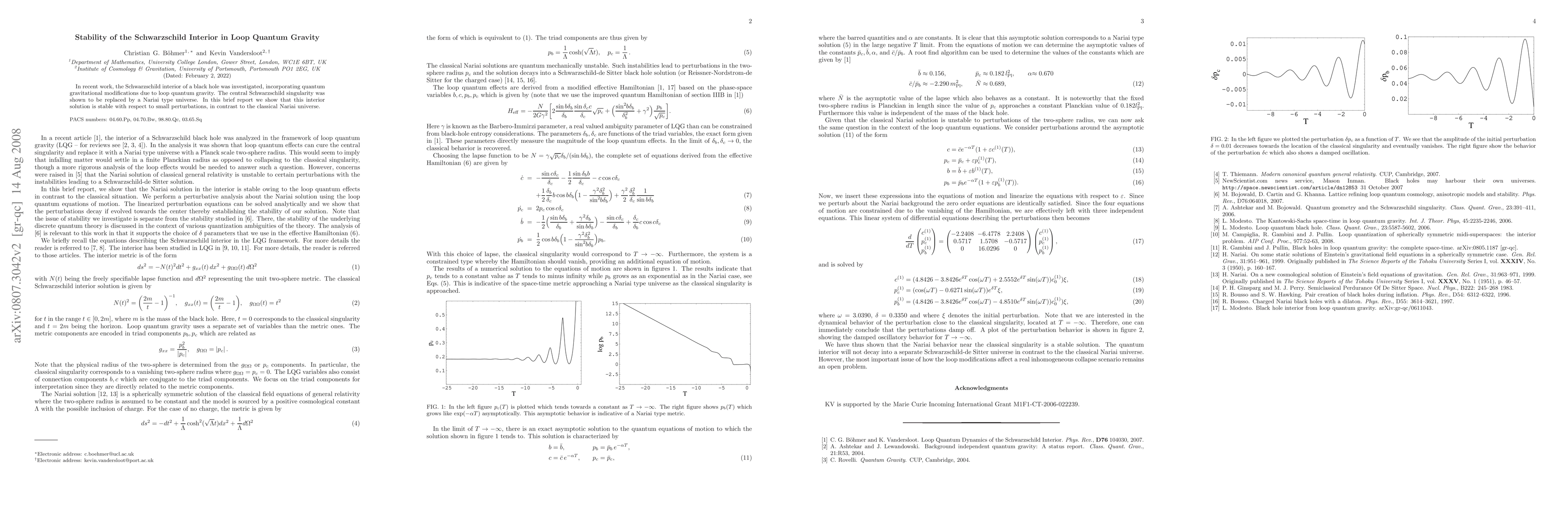 In recent work, the Schwarzschild interior of a black hole was investigated, incorporating quantum gravitational modifications due to loop quantum gravity. The central Schwarzschild singularity was shown to be replaced by a Nariai type universe. In this brief report we show that this interior solution is stable with respect to small perturbations, in contrast to the classical Nariai universe.