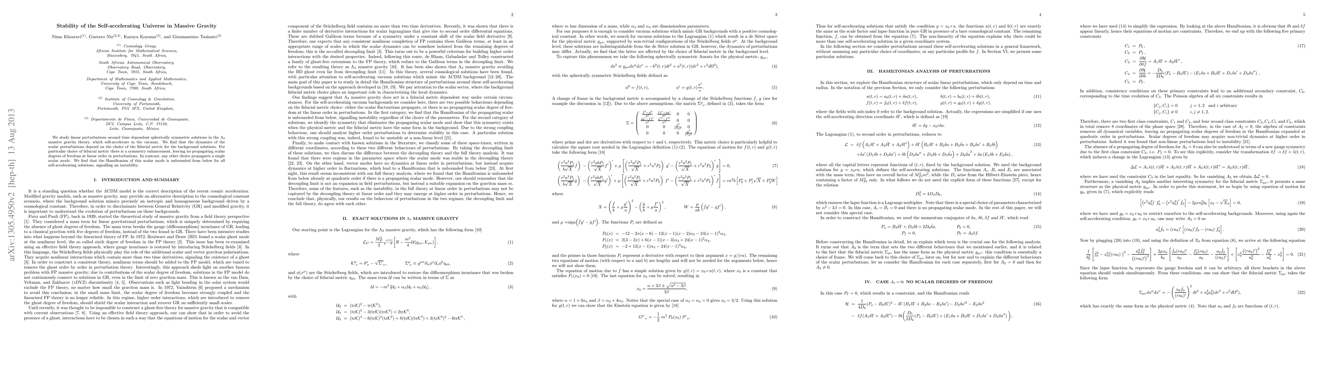 We study linear perturbations around time dependent spherically symmetric solutions in the Lambda_3 massive gravity theory, which self-accelerate in the vacuum. We find that the dynamics of the scalar perturbations depend on the coordinate choice for the background solutions. For particular choices of coordinates there is a symmetry enhancement, leaving no propagating scalar degrees of freedom at linear order in perturbations. In contrast, any other coordinate choice propagates a single scalar mode. We find that the Hamiltonian of this scalar mode is unbounded from below for all self-accelerating solutions, signalling an instability.