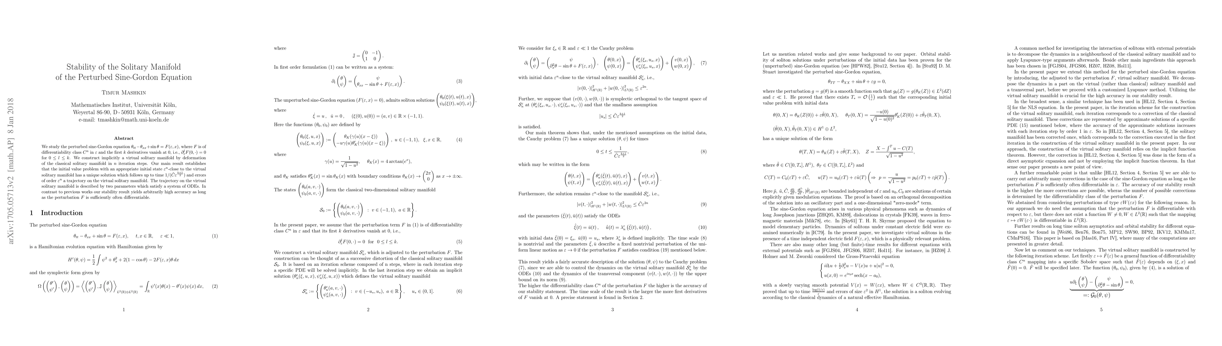 This paper investigates the stability of solitary waves in the perturbed sine-Gordon equation, constructing a virtual solitary manifold through iterative deformations. It proves that solutions starting close to this manifold remain on it with high accuracy, provided the perturbation function is sufficiently differentiable.