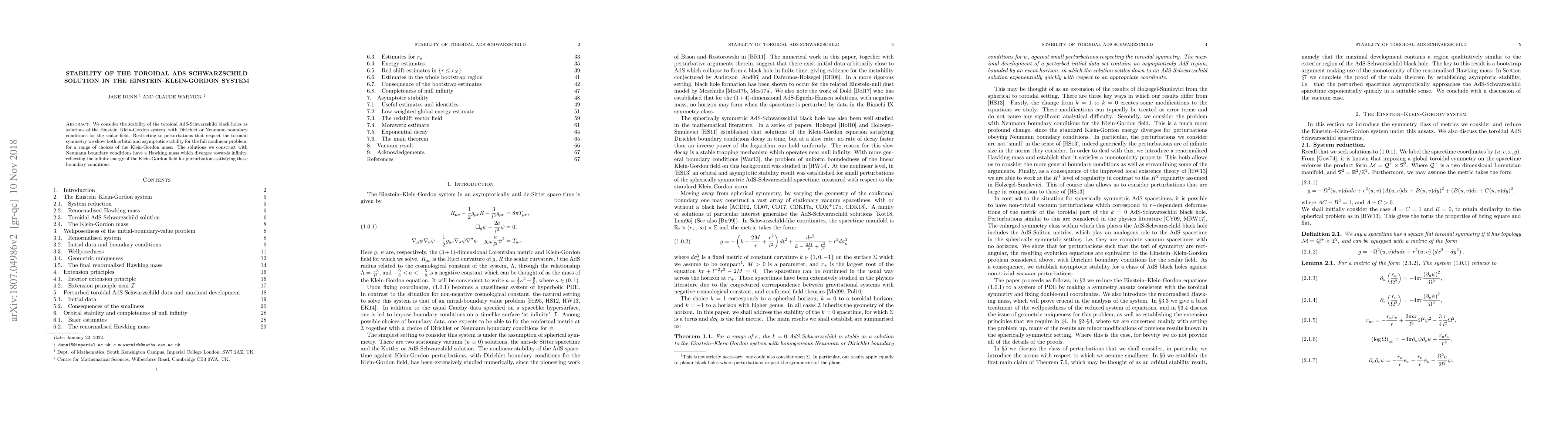 This paper investigates the stability of toroidal AdS-Schwarzschild black holes in the Einstein-Klein-Gordon system under Dirichlet and Neumann boundary conditions. It demonstrates both orbital and asymptotic stability for these solutions, with Neumann boundary conditions leading to a divergent Hawking mass due to infinite Klein-Gordon field energy.