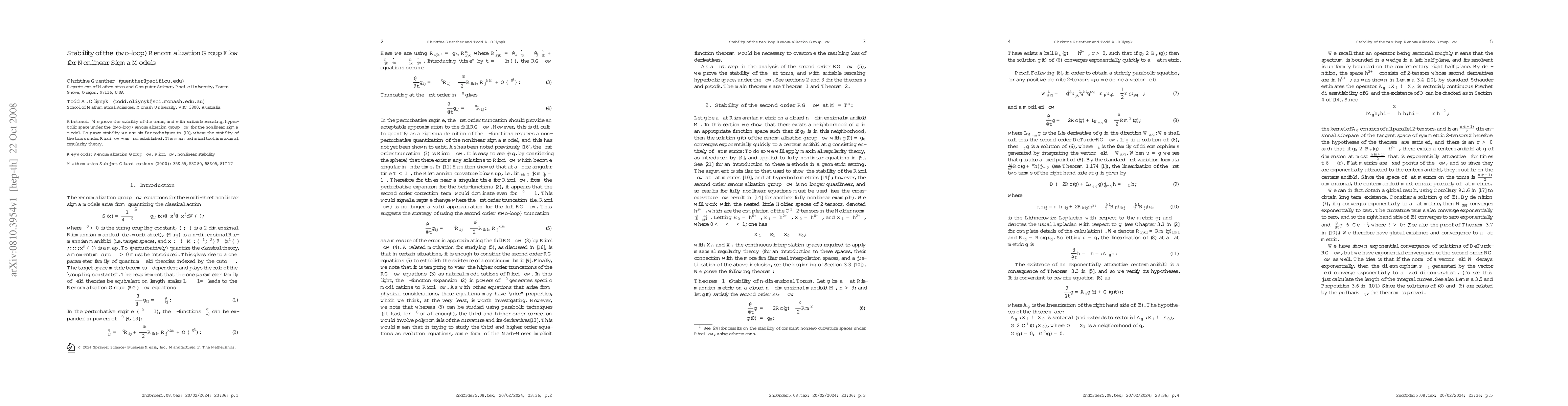 We prove the stability of the torus, and with suitable rescaling, hyperbolic space under the (two-loop) renormalization group flow for the nonlinear sigma model. To prove stability we use similar techniques to \cite{GIK02}, where the stability of the torus under Ricci flow was first established. The main technical tool is maximal regularity theory.