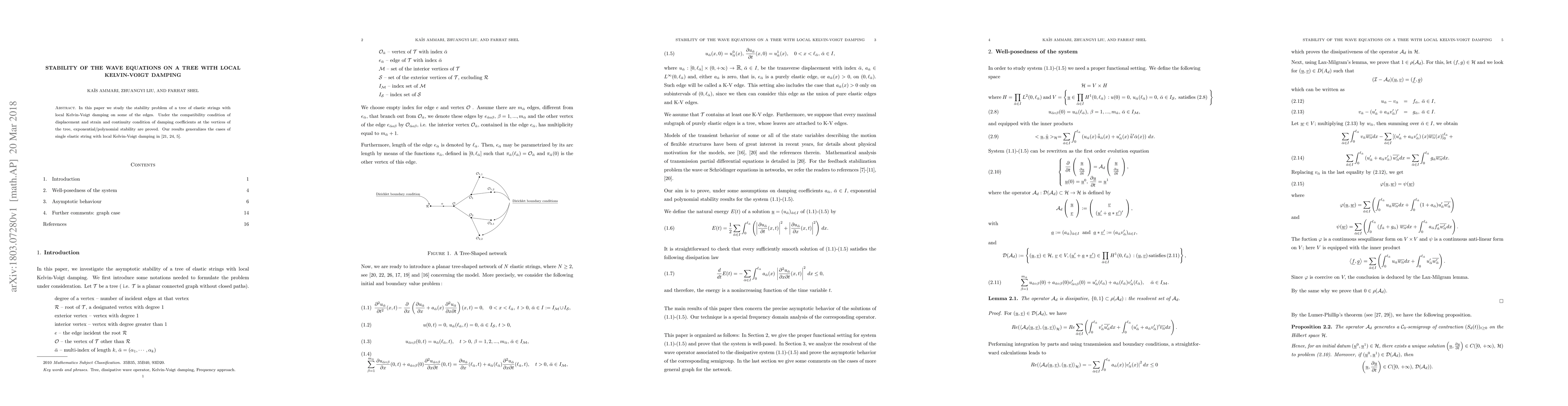 This paper investigates the stability of wave equations on a tree structure with local Kelvin-Voigt damping applied to some edges, proving exponential or polynomial stability under specific conditions of continuity and compatibility at the tree's vertices.