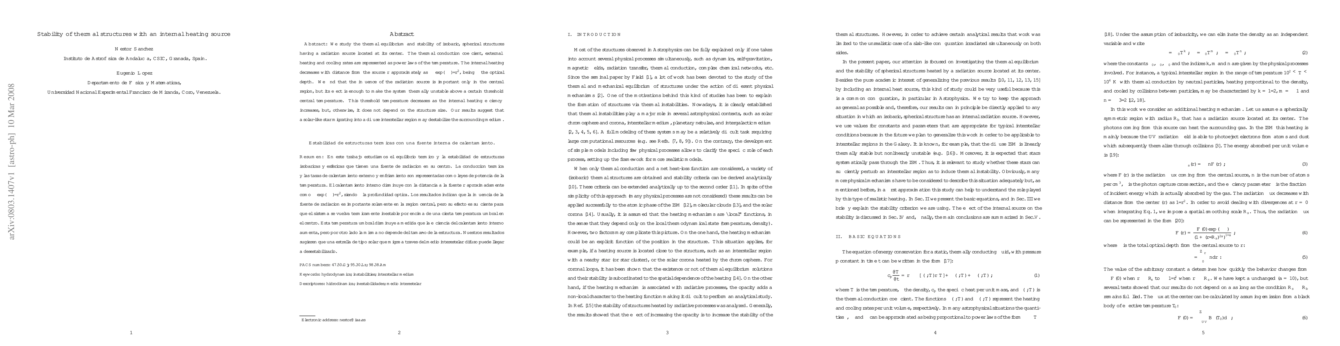 We study the thermal equilibrium and stability of isobaric, spherical structures having a radiation source located at its center. The thermal conduction coefficient, external heating and cooling rates are represented as power laws of the temperature. The internal heating decreases with distance from the source r approximately as exp(-tau)/(r**2), being tau the optical depth. We find that the influence of the radiation source is important only in the central region, but its effect is enough to make the system thermally unstable above a certain threshold central temperature. This threshold temperature decreases as the internal heating efficiency increases, but, otherwise, it does not depend on the structure size. Our results suggest that a solar-like star migrating into a diffuse interstellar region may destabilize the surrounding medium.