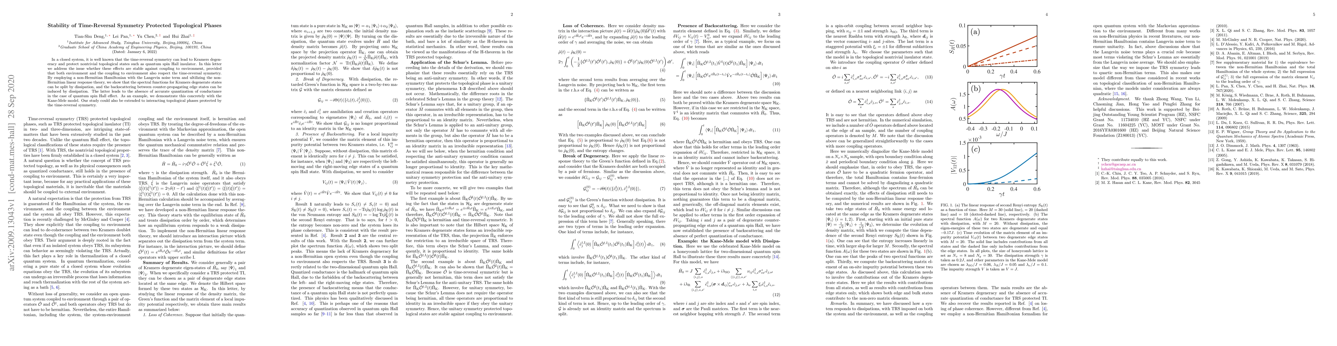In a closed system, it is well known that the time-reversal symmetry can lead to Kramers degeneracy and protect nontrivial topological states such as quantum spin Hall insulator. In this letter we address the issue whether these effects are stable against coupling to environment, provided that both environment and the coupling to environment also respect the time-reversal symmetry. By employing a non-Hermitian Hamiltonian with the Langevin noise term and ultilizing the non-Hermitian linear response theory, we show that the spectral functions for Kramers degenerate states can be split by dissipation, and the backscattering between counter-propagating edge states can be induced by dissipation. The latter leads to the absence of accurate quantization of conductance in the case of quantum spin Hall effect. As an example, we demonstrate this concretely with the Kane-Mele model. Our study could also be extended to interacting topological phases protected by the time-reversal symmetry.
