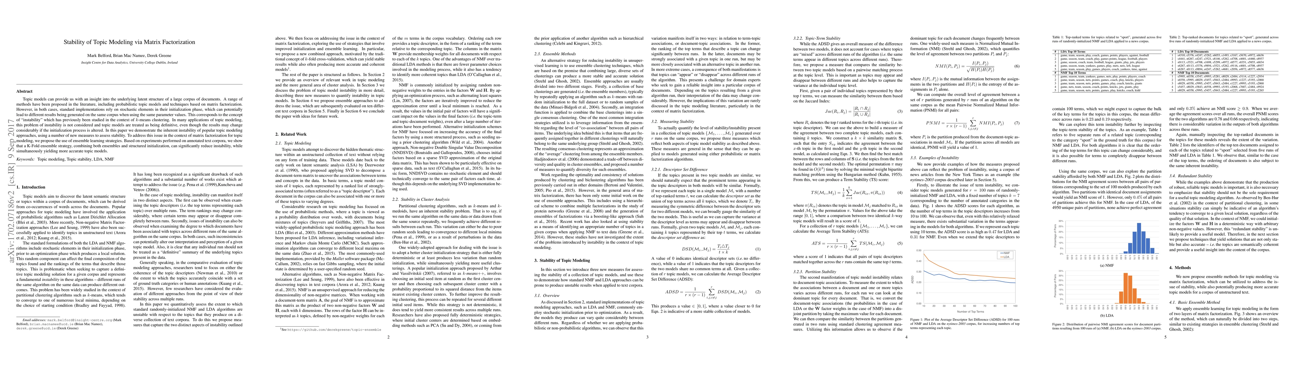 This paper investigates the instability of topic modeling methods, particularly those based on matrix factorization, due to stochastic initialization. It proposes ensemble learning strategies, specifically K-Fold ensembles with structured initialization, to improve stability and accuracy, demonstrating their effectiveness through experiments on annotated text corpora.
