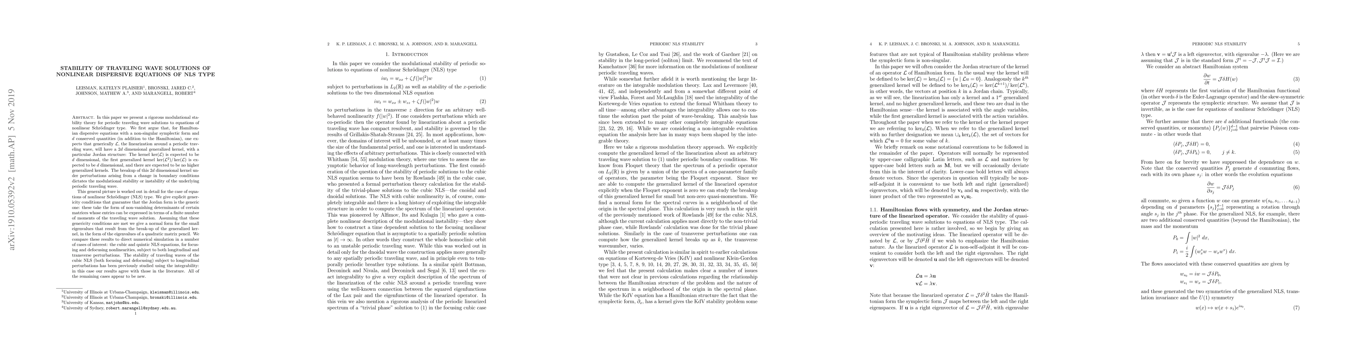 Researchers developed a modulational stability theory for periodic traveling wave solutions in nonlinear dispersive equations, finding that generic cases have specific Jordan structures and normal forms for small eigenvalues, with implications for understanding wave behavior in various NLS-type equations.