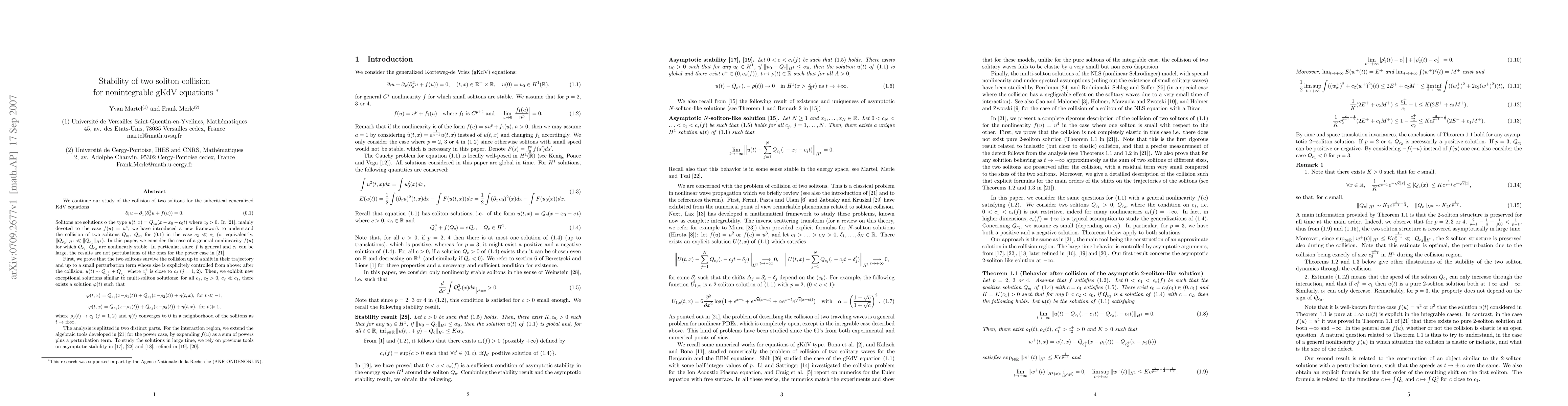We continue our study of the collision of two solitons for the subcritical generalized KdV equations. In a previous paper, mainly devoted to the case of the quartic gKdV equation, we have introduced a new framework to understand the collision of two solitons in the case where one soliton is small with respect to the other. In this paper, we consider the case of a general nonlinearity $f(u)$ for which the two solitons are nonlinearly stable. We prove that in this situation the two solitons survive and we describe the collision at the main orders.