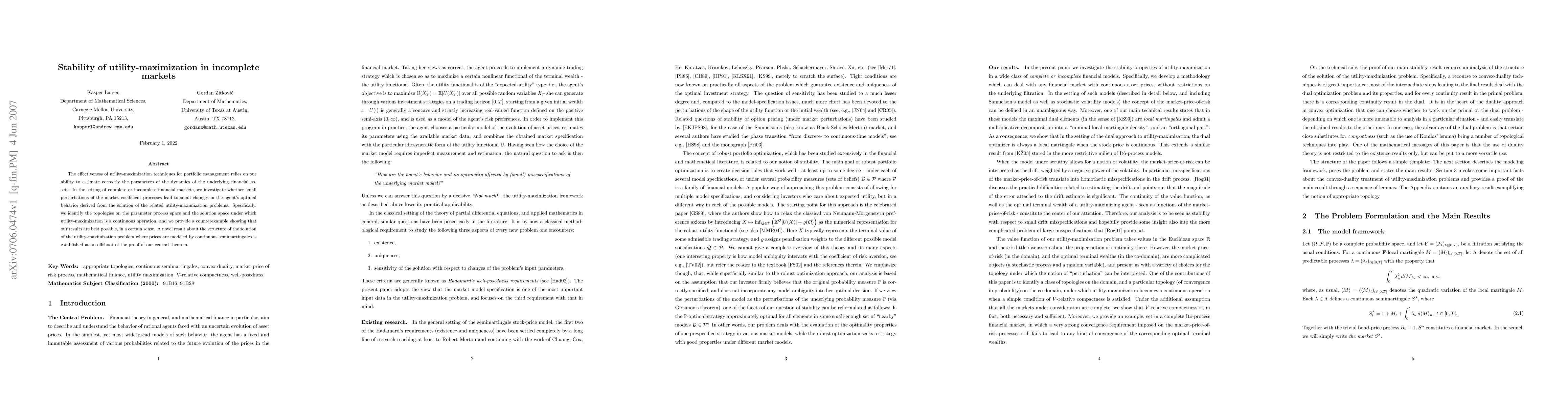The research identifies the topologies on parameter process space and solution space under which utility-maximization is a continuous operation, providing a comprehensive analysis of stability in incomplete markets.