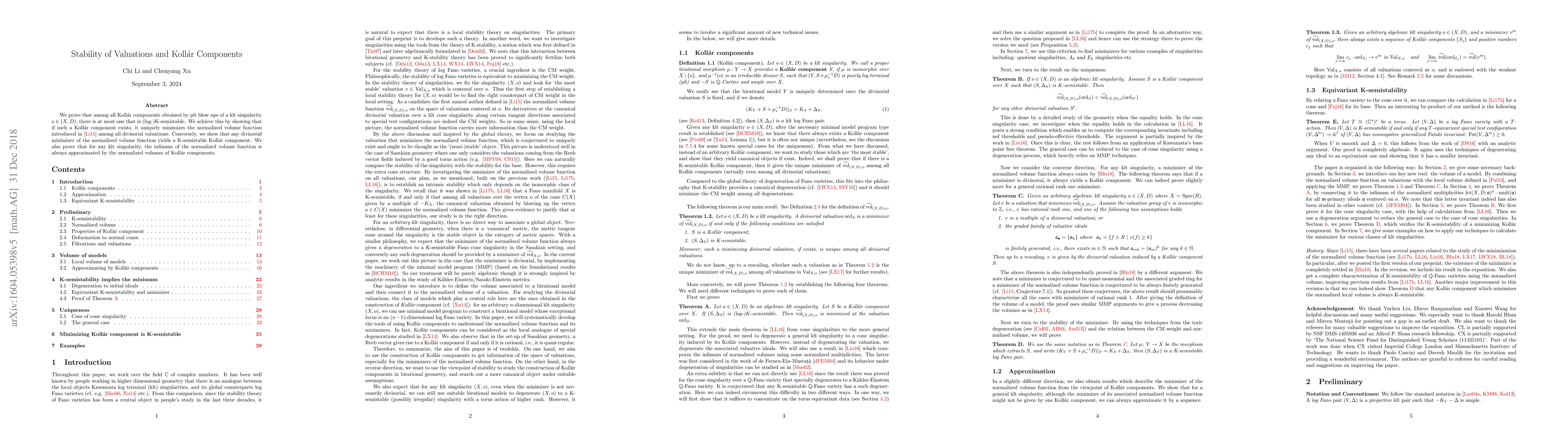 This paper proves that in a klt singularity, at most one Kollár component from plt blowups is (log-)K-semistable, uniquely minimizing a normalized volume function. It also demonstrates that divisorial minimizers of this function yield K-semistable Kollár components.