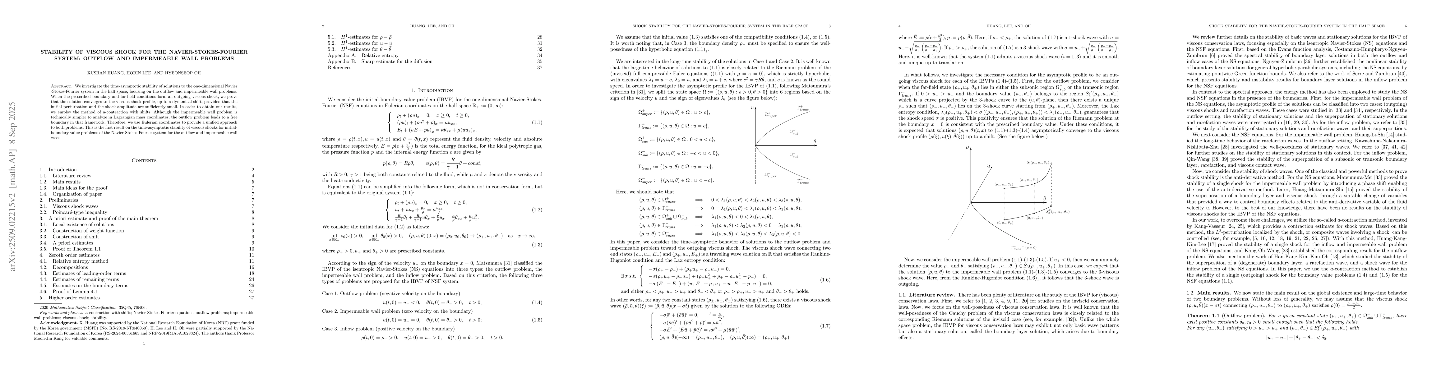We investigate the time-asymptotic stability of solutions to the one-dimensional Navier-Stokes-Fourier system in the half space, focusing on the outflow and impermeable wall problems. When the asymptotic profile determined by the prescribed constant states at the boundary and at the far field is a viscous shock, we show that the solution converges asymptotically to the viscous shock profile, up to a dynamical shift, provided the initial perturbation and the shock amplitude are sufficiently small. In order to obtain our results, we employ the method of a-contraction with shifts. Although the impermeable wall problem is technically simpler to analyze in Lagrangian mass coordinates, the outflow problem leads to a free boundary in that framework. Therefore, we use Eulerian coordinates to provide a unified approach to both problems. This is the first result on the time-asymptotic stability of viscous shocks for initial-boundary value problems of the Navier-Stokes-Fourier system for the outflow and impermeable wall cases.