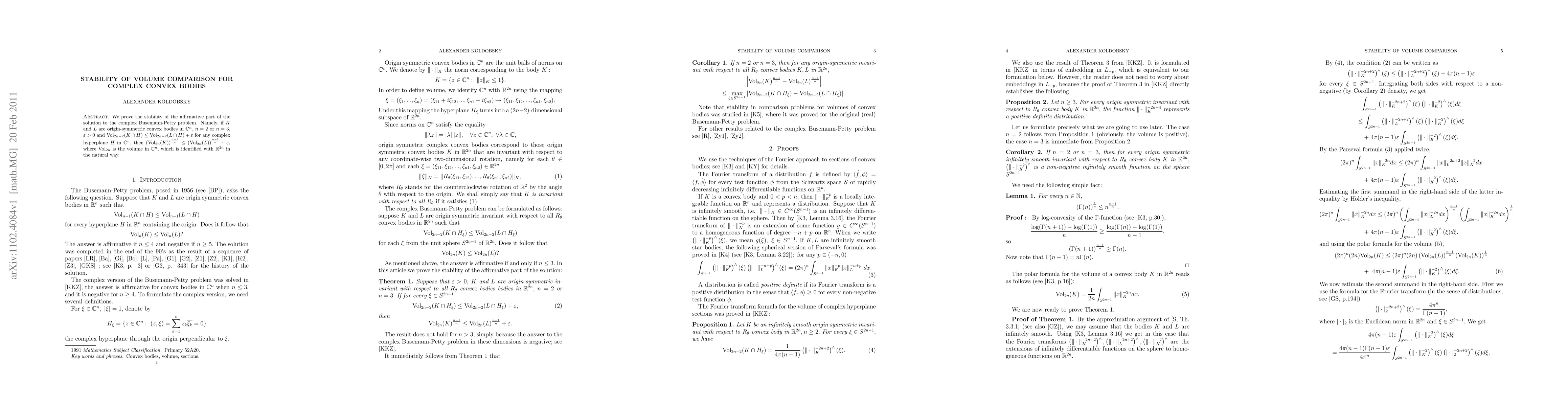 We prove stability in the affirmative part of the Busemann-Petty problem on sections of complex convex bodies.