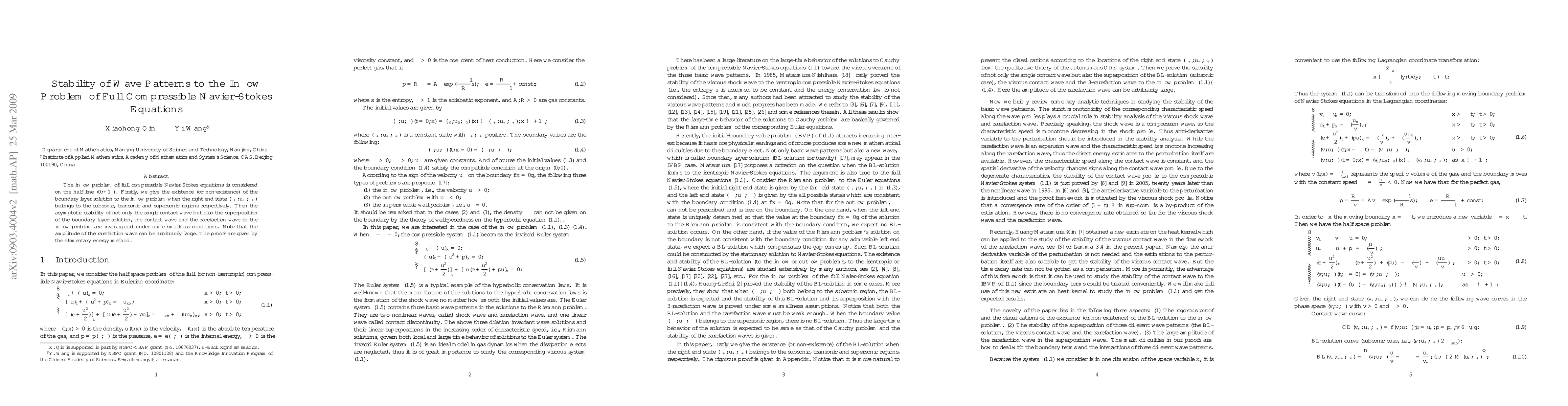 This paper investigates the stability of wave patterns for the inflow problem of full compressible Navier-Stokes equations on the half line. It examines the existence of boundary layer solutions and the asymptotic stability of single contact waves and their superpositions under smallness conditions, using the elementary energy method.